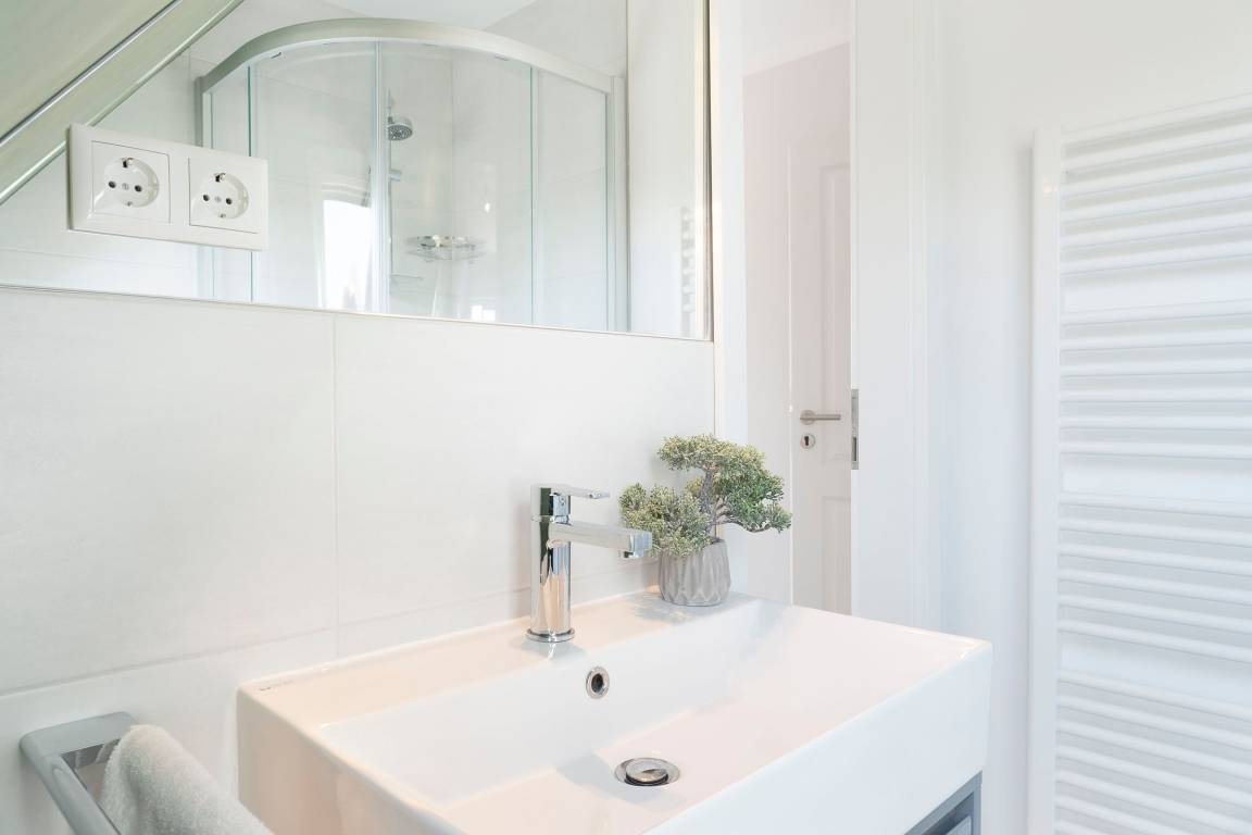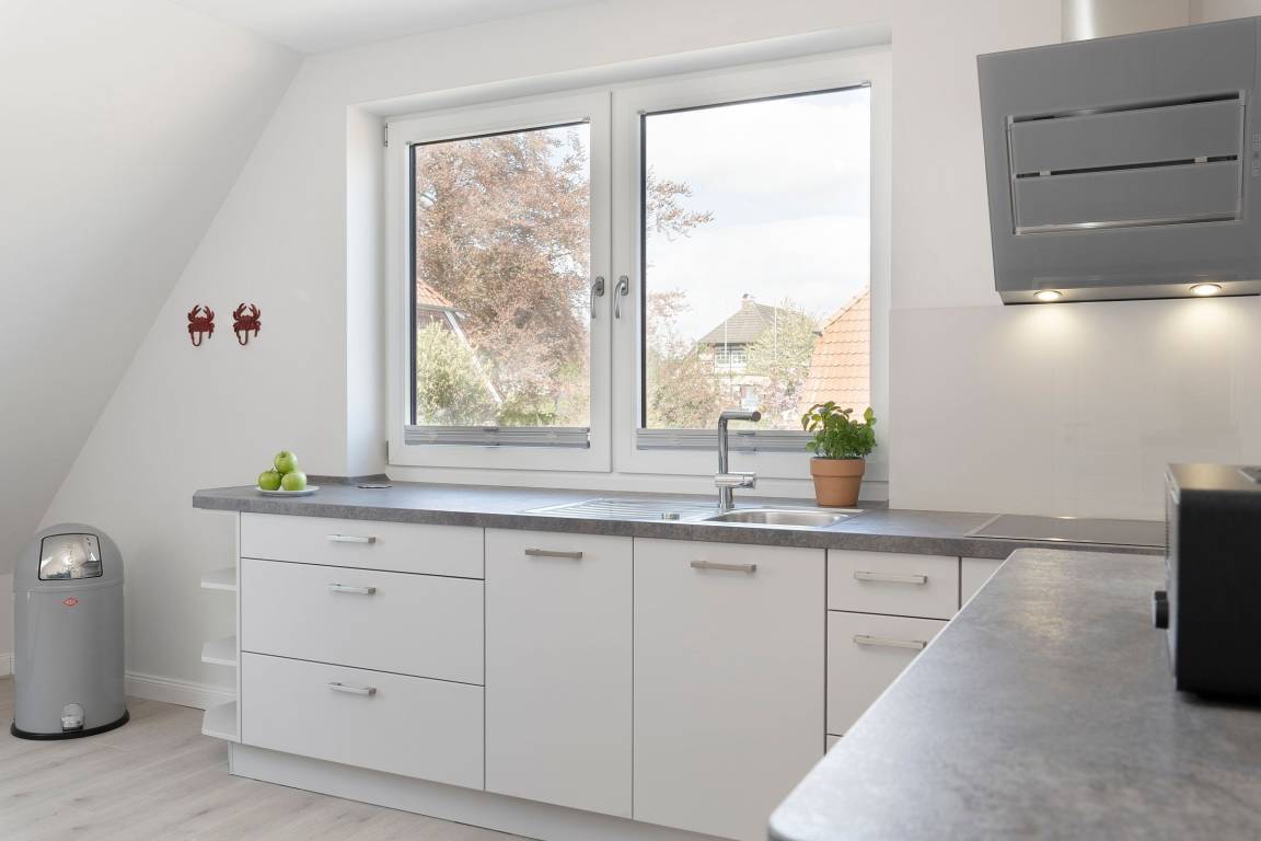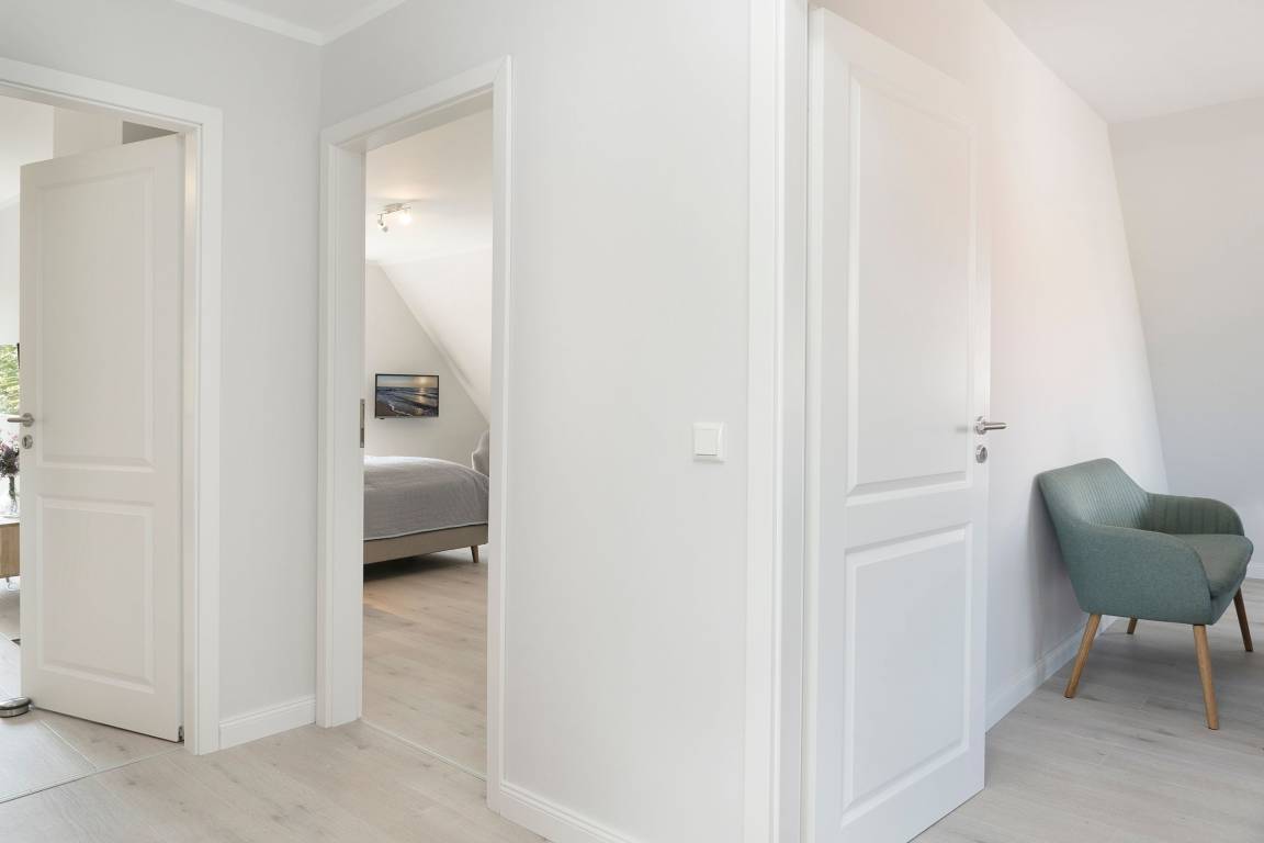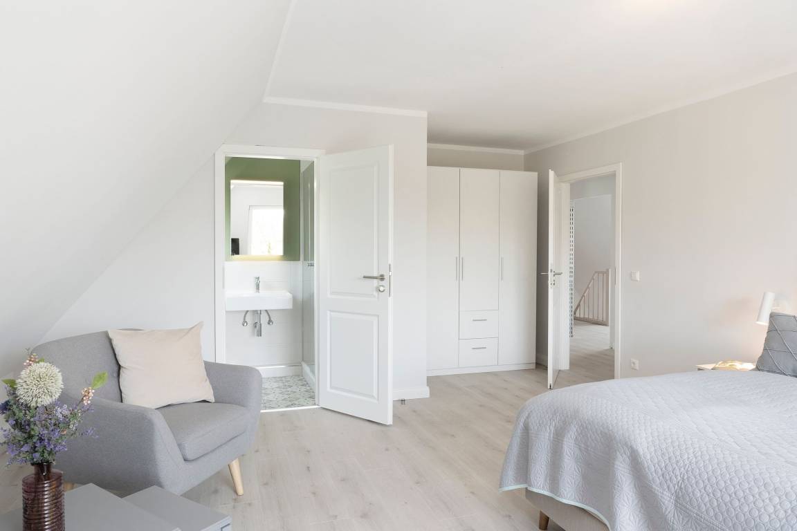 „Eigene Bäder für jedes Schlafzimmer, Küche, Balkone, hell und modern eingerichtet, gute Matratzen. Lage zum Strand und Zentrum, gute Unterstellmöglichkeiten für PKW und Fahrräder.“