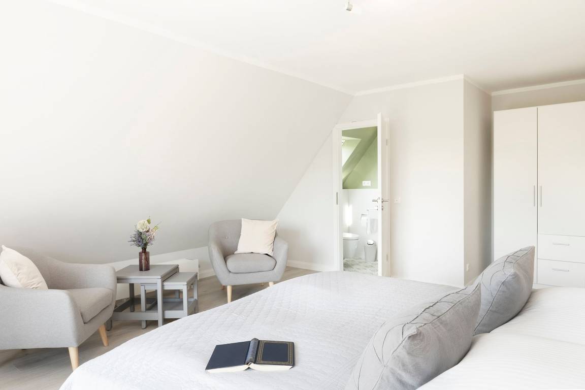 „Die Wohnung ist in einem super Zustand. Alles neu und sehr gepflegt. Die Lage ist schön ruhig und mit dem Fahrrad ist alles optimal zu erreichen. Das Bett im rechten Zimmer war sehr bequem und zwei Bäder inkl. Dusche waren praktisch. Wir waren rundum zufrieden und können die Wohnung sehr empfehlen.“