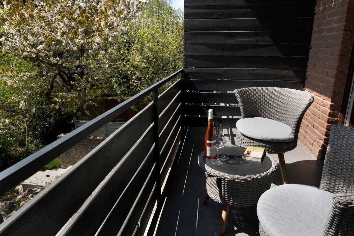 Die große, voll ausgestattete Küche mit Essplatz lädt zum gemeinsamen Kochen und zum Ausklingen eines abenteuerlichen Tages ein. Beide Schlafzimmer sind mit einem lichtdurchfluteten en Suite Bad und einem Balkon (Süd-Ausrichtung) ausgestattet, die komfortablen Doppelbetten (180x200 cm) sorgen für eine angenehme Nachtruhe. Auf der unteren Terrasse steht Ihnen ein gemeinschaftlicher Grill zur Verfügung. Von dort aus haben Sie ebenfalls Zugang zum gemeinschaftlich genutzten Garten. Der WLAN-Anschluss ist selbstverständlich inklusive.