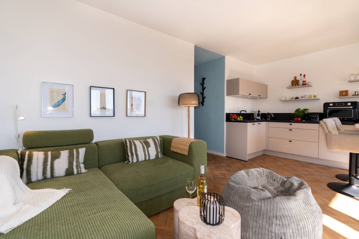 Design trifft Meer! Diese top-moderne 2-Zimmer-Wohnung im 2. OG bietet neuesten Komfort für bis zu 2 Personen und einen Hund.