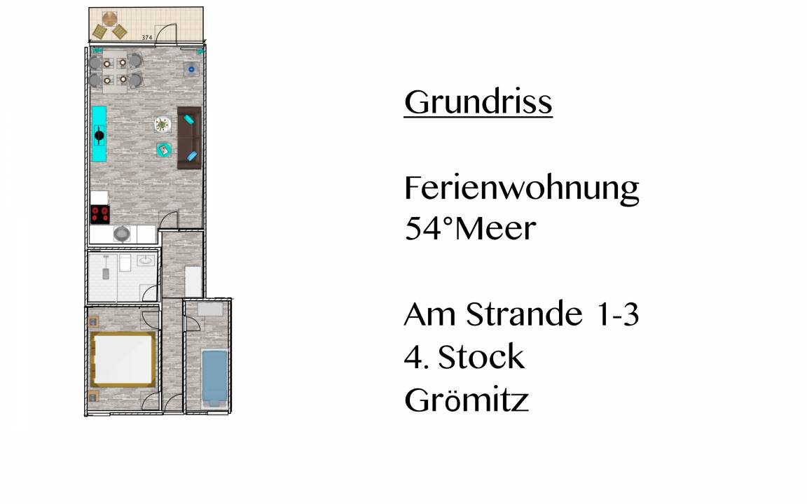 Die Wohnfläche der ca. 52 m² großen Ferienunterkunft verteilt sich auf ein Wohn- / Esszimmer mit integrierter Küche, zwei separate Schlafzimmer sowie auf einen kleinen Flur und ein Badezimmer und bietet Platz für max. 3 Personen. Der Wohnbereich ist mit einer gemütlichen Couch sowie einem Essplatz versehen. Vom Wohnzimmer gelangen Sie auf den möblierten Balkon, Sie genießen einen herrlichen Blick auf die Grömitzer Seebrücke und können hier morgens in der Sonne frühstücken. Die Küche ist u.a. mit: Kühlschrank, Spülmaschine, 4-Platten-Herd, Backofen, Kaffeemaschine und weiteren Küchengeräten ausgestattet. Eines der beiden separaten Schlafzimmer ist mit einem Doppelbett (getrennte Matratzen, Maße: 1,80 x 2,00 m) versehen. Im Flur der Wohnung steht für Sie ein Kleiderschrank bereit. Das zweite Schlafzimmer verfügt über ein Bett (1,20 m x 2 m). Das Badezimmer verfügt über eine Walk-in-Dusche, WC.