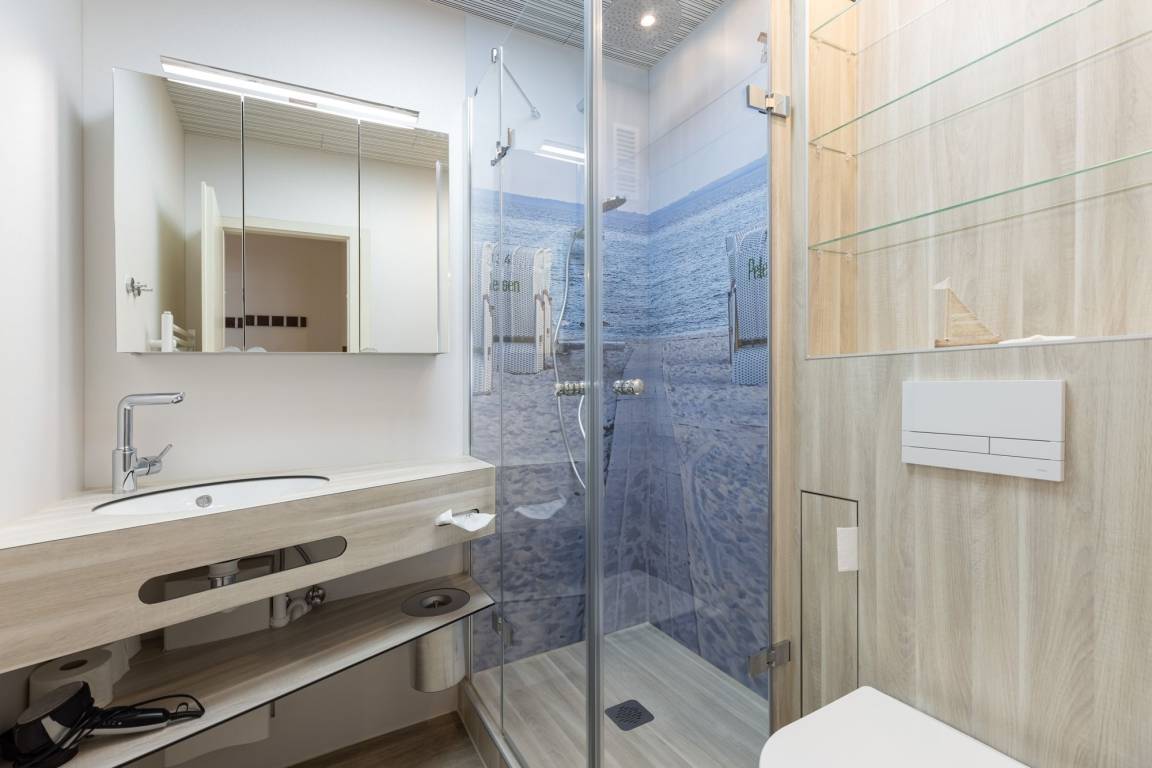 Der großzügig geschnittene Wohnraum mit TV, hochwertiger Stereoanlage und integrierter, voll ausgestatteter Küche mit mobilem Backofen sowie gemütlicher Essecke laden zum gemeinsamen Klön & Schnack ein. Ihnen stehen zwei Schlafzimmer zur Verfügung: Das erste mit einem Doppelbett (2 x 80x200 cm) und das zweite mit einem Einzelbett (100x200 cm) und einem zusätzlichen Kinderbett (180 cm lang, vom Tischler angefertigt). In beiden Schlafzimmern sind Rollläden als Verdunklungsmöglichkeit vorhanden, sodass Sie sich von Ihrem erlebnisreichen Urlaubstag ausruhen und Kraft für den nächsten Tag tanken können! Der Ausblick aus beiden Schlafzimmern ist absolut empfehlenswert: Sie schauen entweder auf den Deich oder haben einen Teilmeerblick auf die Ostsee. Das helle, moderne Badezimmer ist mit Dusche, Waschbecken und WC ausgestattet. Von Ihrem Balkon haben Sie einen wunderbaren seitlichen Blick auf die Ostsee. Genießen Sie Sonne, Sand und Meer... diese Wohnung hat viel Mehr! Ihre Traumwohnung im Grömitz Center: Strand- und zentrumsnah! Hier wollen Sie nicht mehr weg... Versprochen!