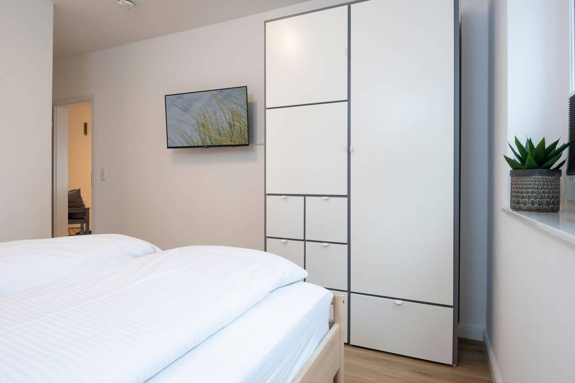 „Wir waren bereits zum vierten Mal in diesem Haus und zum zweiten Mal in dieser Ferienwohnung. Zuvor hatten wir auch die große Erdgeschosswohnung nebenan gemietet, die uns insgesamt besser gefallen hat. Die nun gebuchte Ferienwohnung hat uns dennoch gut gefallen. Besonders positiv hervorheben möchten wir die exzellente Lage sehr nah am Strand, die moderne Ausstattung und das insgesamt angenehme Wohnambiente. Es gibt jedoch einige Punkte, die uns gestört haben: •Der Parkplatz ist – wie auch einige der anderen Parkplätze der Wohnanlage - extrem eng und nur mit Rangieren nutzbar. •Der Fernseher (Magenta TV) war auch dieses Mal nur schlecht nutzbar. Liegt es am WLAN? Ich weiß nicht, aber das hat uns schon vor einem Jahr nicht gut gefallen. •Im Schlafzimmer fehlt schon seit längerem die Fernbedienung, im zweiten Schlafzimmer funktionierte der Fernseher gar nicht (beides seit längerem, wie uns ein Techniker berichtete) •Im Bad gibt es nur einen Handtuchhaken; für vier Personen ist das völlig unzureichend. Auch die Haken an der Tür sind unpraktisch, da die Handtücher ständig herunterfallen. •Die Garderobenhaken für Jacken sind sehr klein, bei mehreren oder dickeren Jacken im Herbst kaum nutzbar. •Die Kopfkissen im Schlafzimmer sind unbequem und – sorry – billig. •Die Beleuchtung im Bad ist unglücklich, man sieht sich im Spiegel nur sehr schlecht beleuchtet •Das Waschbecken im Hauptbad ist leider sehr klein und erinnert eher an ein Gäste-WC-Becken, was für den täglichen Gebrauch unpraktisch ist •Das Sitzen im Wohnzimmer ist, wie uns schon bei unserem ersten Aufenthalt auffiel, sehr unbequem. Das kleine Zweier-Sofa und der unbequeme Stuhl entsprechen nicht dem ansonsten hohen Standard der Wohnung. Wir würden uns sehr freuen, wenn diese Punkte verbessert werden, da die Wohnung ansonsten wirklich sehr schön ist.“