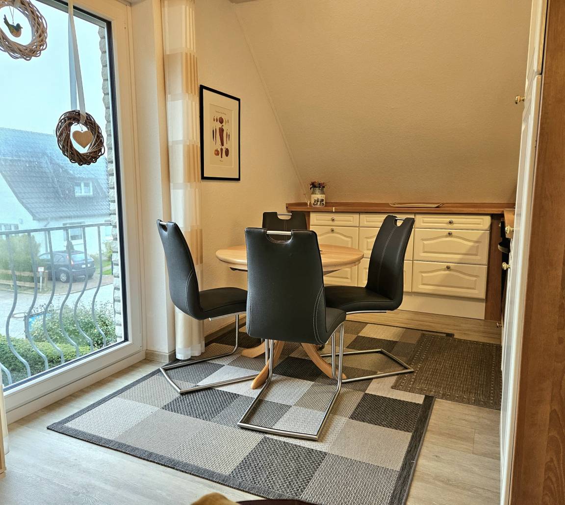 Das Appartement "Nr. 2" im "Haus Frohnau" liegt in der ersten Etage und bietet Platz für bis zu fünf Personen. Die Wohnfläche der ca. 42 m² großen Unterkunft verteilt sich auf einen Wohn- / Schlafraum mit offener Küche, ein separates Schlafzimmer, ein Badezimmer sowie ein Gäste-WC. Der Wohnbereich ist mit einer gemütlichen Sitzecke, einem Doppelbett (1,80 x 2 m) sowie einer offenen Küche versehen. Die Küchenzeile ist u.a. mit Ceranfeldherd, Backofen, Geschirrspülmaschine, einem großen Kühlschrank und Gefrierschrank sowie einem Essplatz ausgestattet. Das Tageslicht-Badezimmer ist mit Dusche/WC und Waschtisch ausgestattet, zusätzlich gibt es ein Gäste-WC.