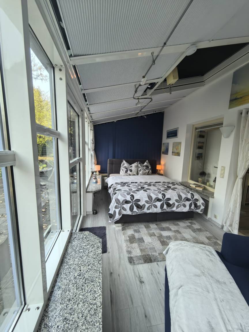 Von hier aus gelangen Sie in den Wintergartenähnlichen Schlafbereich, welcher auch Zugang zur Terrasse bietet.