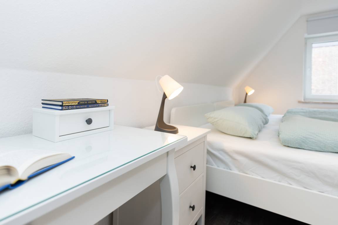 mit Doppelbett (2 mal 90x200cm) verfügt neben einem großen Kleiderschrank über einen kleinen Sekretär. Hier lassen sich Urlaubsgrüße verfassen oder die Kinder können sich zum Malen zurückziehen.