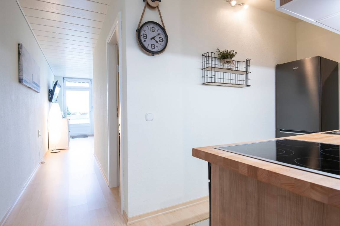 Mit dem Fahrstuhl fahren Sie bequem ins 2. Obergeschoss und öffnen die Tür zu Ihrer 2-Zimmer-Ferienwohnung für bis zu 4 Personen auf ca. 45 m² Wohnfläche. Willkommen im Urlaub!