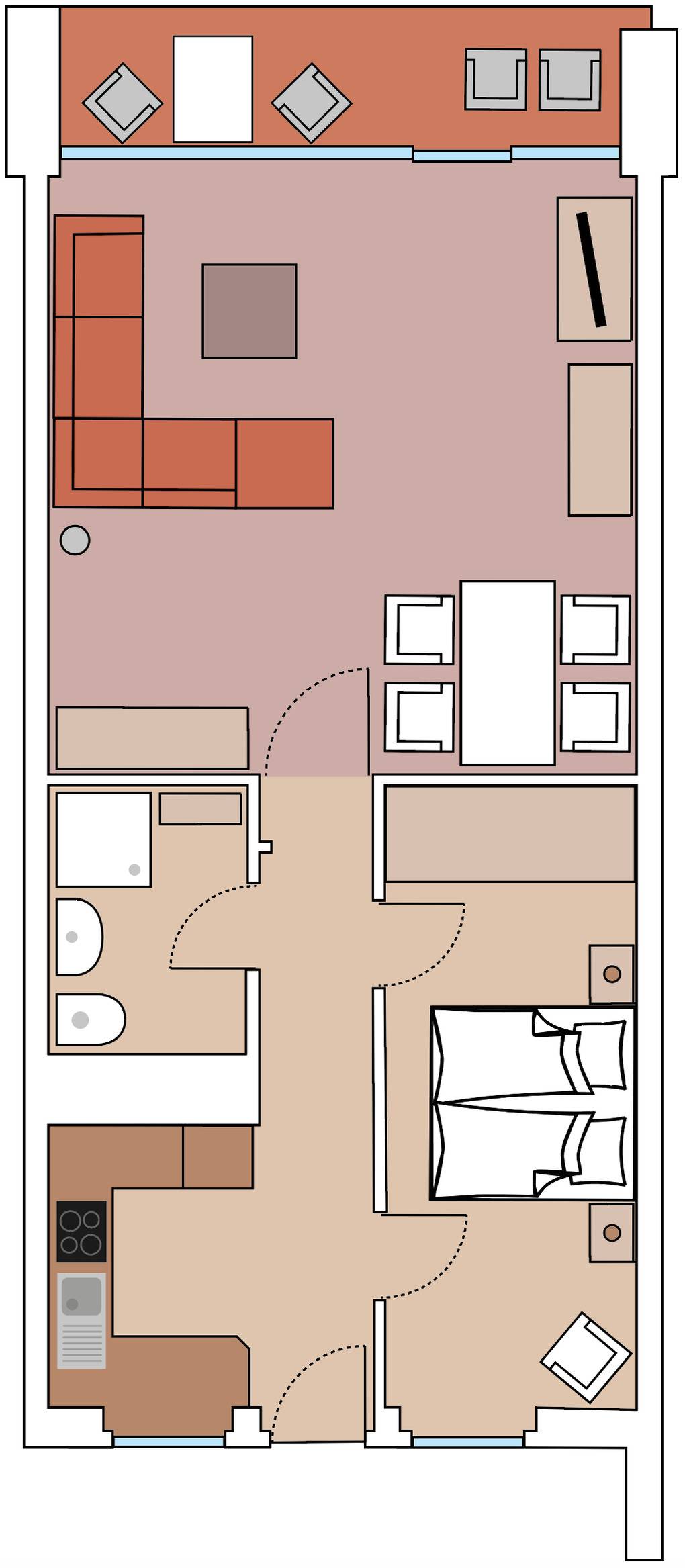 58 m² Ferienwohnung ∙ 1 Schlafzimmer ∙ 2 Gäste