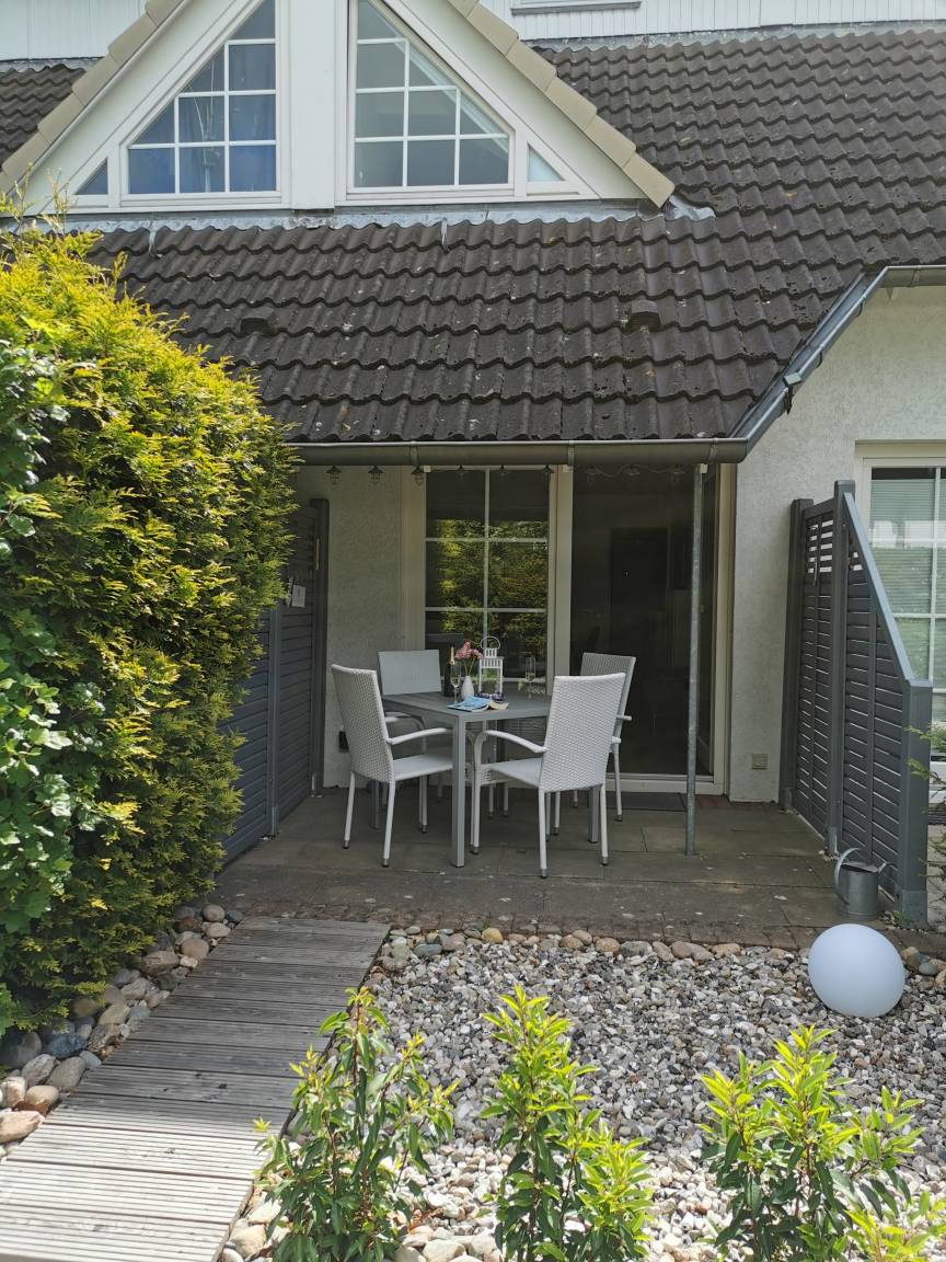 Die Wohnfläche der ca. 65 m² großen Unterkunft verteilt sich auf zwei Ebenen. Im Erdgeschoss befinden sich der Wohnbereich mit Esszimmer und eine Einbauküche. Über eine Treppe gelangt man in das Obergeschoss. Dort gibt es ein separates Schlafzimmer sowie ein modernes, neues Badezimmer.