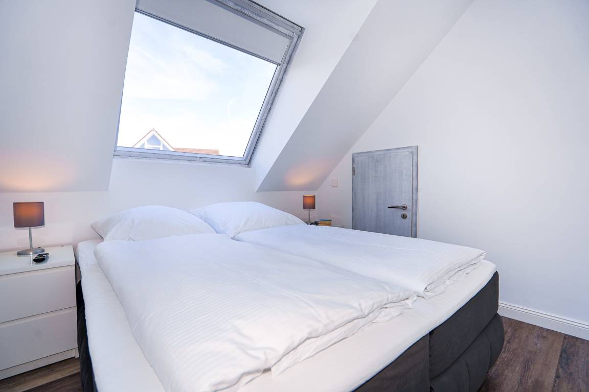 Im zweiten Schlafzimmer finden Sie ein bequemes Boxspringbett (160x200), einen Kleiderschrank und ebenfalls einen Fernseher vor. Die Fenster lassen sich durch Plissees verdunkeln.