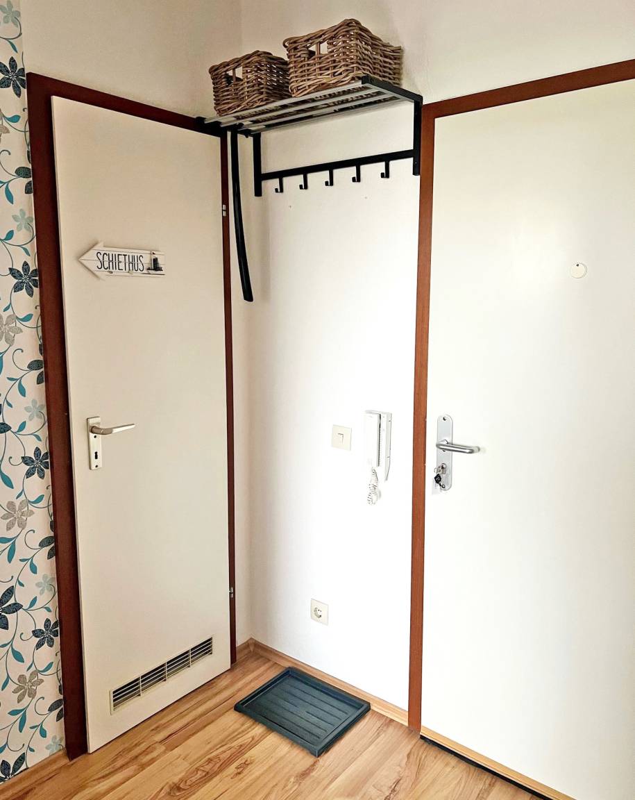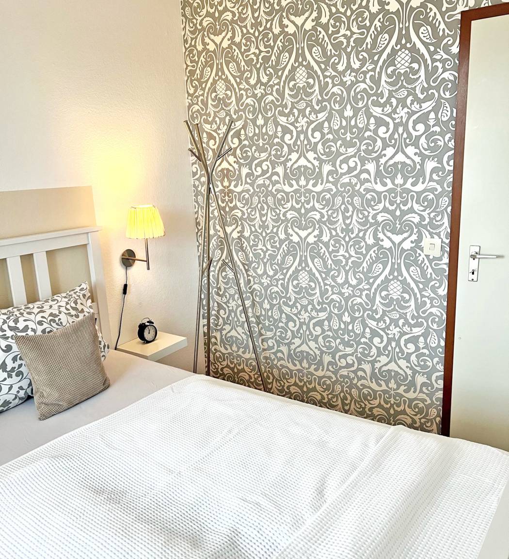 Im Wohnzimmer finden Sie eine einladende Couch, einen Esstisch, einen Flachbildfernseher sowie den direkten Zugang zu einem möblierten, sonnenverwöhnten Balkon. Das Schlafzimmer verfügt über ein komfortables Doppelbett (2x80x200 mit Fußteil) und einem Garderobenständer, weitere Kleidung verstauen Sie im Garderobenschrank im Flur. Die separate, offene Küche ist mit einem Cerankochfeld, Backofen und Kühlschrank (ohne Gefrierfach) ausgestattet und bietet alles, was Sie zur Zubereitung Ihrer Mahlzeiten benötigen. Sie verfügen hier über eine Senseo Padmaschine. Das Badezimmer ist mit einem Waschbecken, WC und einer Dusche ausgestattet. Haartrockner vorhanden. Zur Wohnung gehört außerdem ein Stellplatz mit Parkplatzsperre (Schlüssel durch Agentur). Im gemeinschaftlichen Bereich finden Sie eine Münzwaschmaschine sowie einen Trockner. Wir danken für Ihr Verständnis, dass in dieser Wohnung keine Tiere erlaubt sind und das Rauchen nur auf dem Balkon gestattet ist. Zudem steht Ihnen kostenfreies WLAN zur Verfügung.