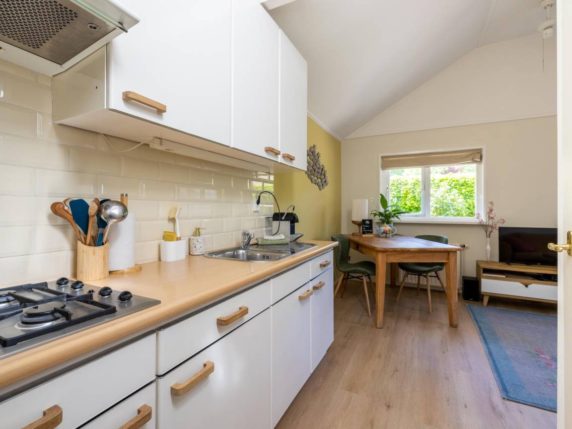 Layout : Parterre: Küche mit Wasserkocher, Kochherd(4 Kochplatten, Gas), Dunstabzugshaube, Kaffeemaschine(cups), Kombi-Mikrowelle, Kühl-/Gefrierkombination , Wohn/Esszimmer mit TV(Flatscreen), Esstisch(2 Personen), Sitzecke(3 Personen) , Schlafzimmer mit Doppelbett(Zwei Einzelbettdecken) , Badezimmer mit Waschbecken, Dusche, Toilette