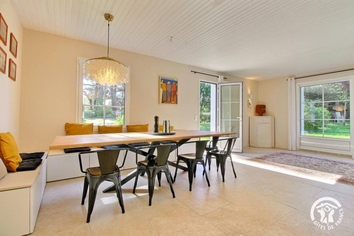 „Nous avons passé un séjour très agréable. Les propriétaires sont charmants; ils nous ont accueillis et présenté la maison, qui correspond totalement à la description. Les volumes des pièces sont généreux et tout à fait adaptés à 12 personnes. La cuisine est très bien équipée. La literie est confortable. L'environnement est très calme et le jardin est propice à la détente (quand le soleil est au rendez-vous). La situation du logement est idéale: à 15 min à pieds du centre ville et du port, centrale pour découvrir les 2 parties de l'île, à 15 min à pieds d'un supermarché et à 5 min à pieds de la première plage en passant par le camping.“
