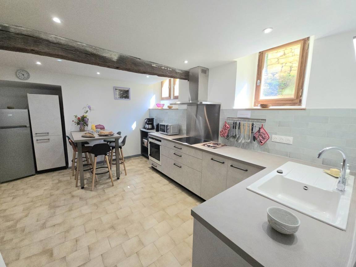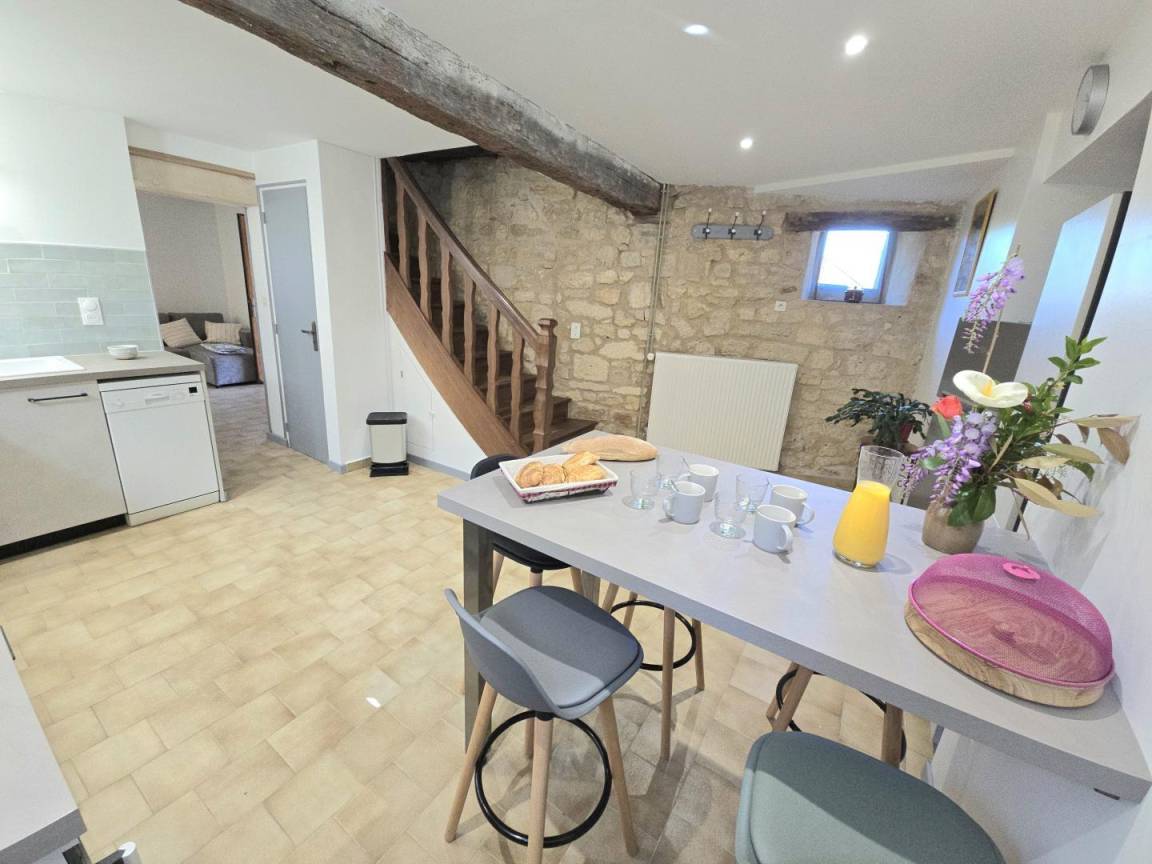 „L’accueil a été très agréable, le propriétaire est sympathique et souriant, il nous a même conseillé certains endroits à visiter. La maison est très propre, et refaite à neuf. Nous étions 5, et n’avons pas manqué de confort. La literie est bonne et la salle de bain est très fonctionnelle. La maison est bien équipée, rien ne manque dans la cuisine. La seule chose que nous ayons eut à déplorer, est le manque d’un stylo mis à disposition pour écrire dans le livre d’or.“