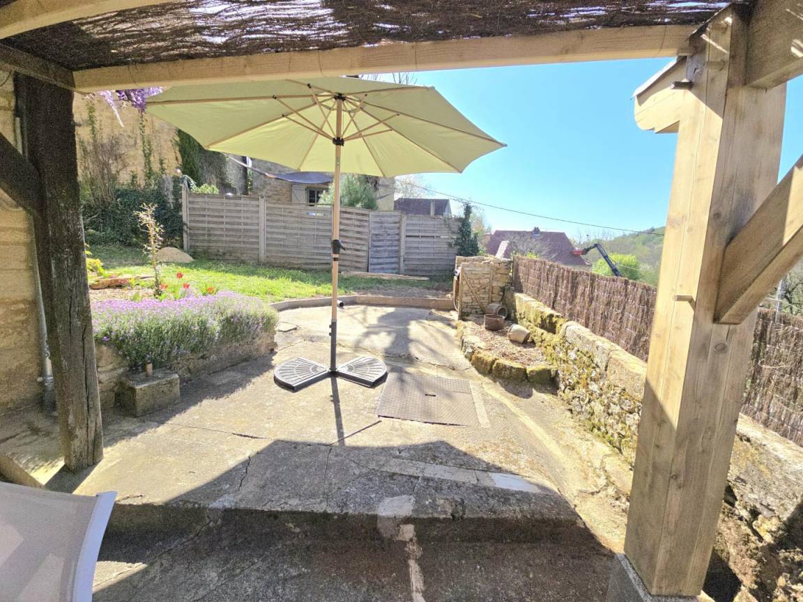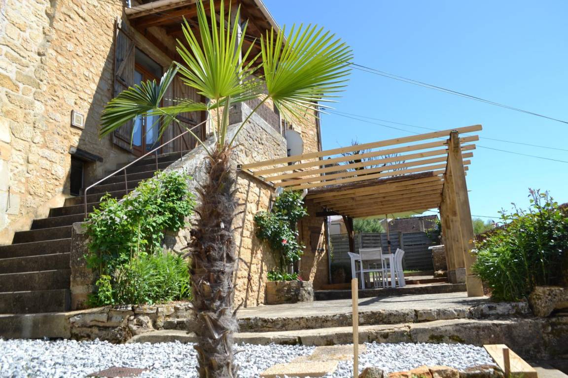 Sie erreichen das Haus über 18 Stufen und haben Zugang zu einer schattigen Terrasse mit Gartenmöbeln und einem Plancha-Grill.