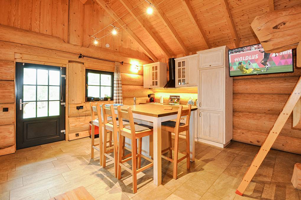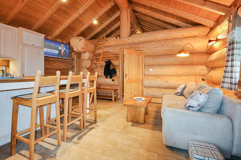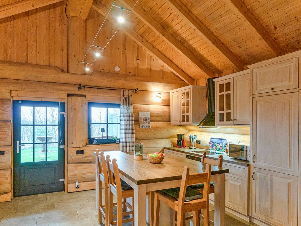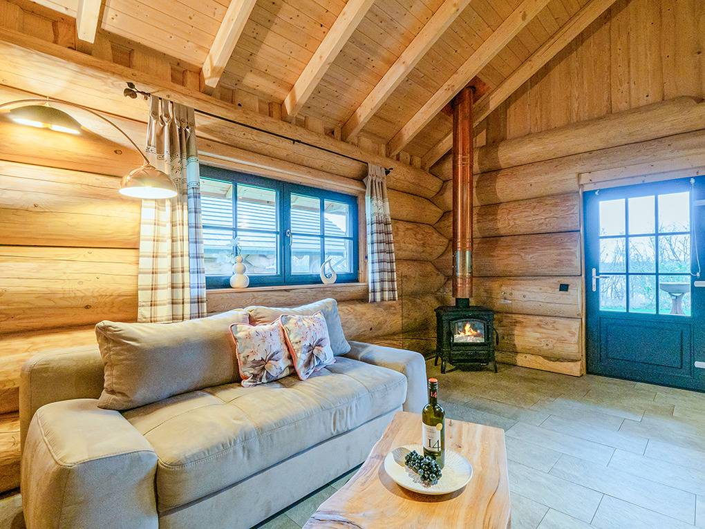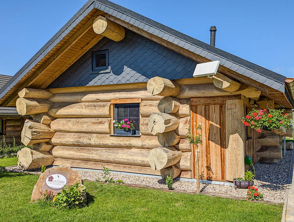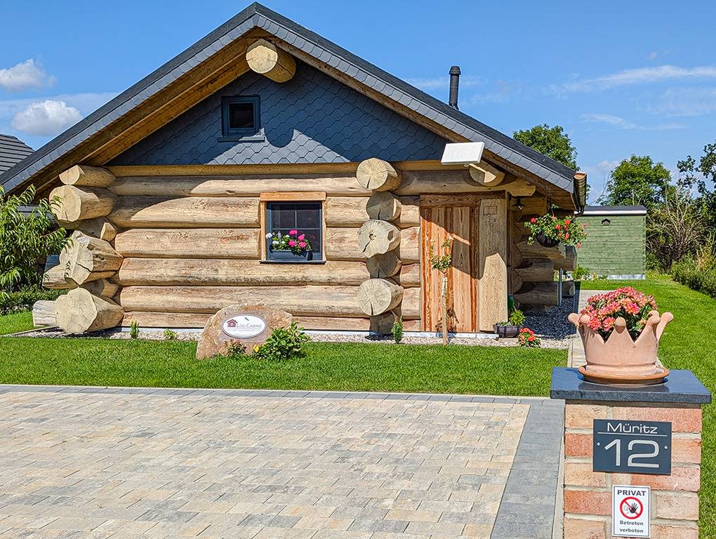 Haus: Sehr schöne Ferienhäuser mit Kaminofen und Sauna. Kleine Ferienhaussiedlung mit sieben Naturstammhäusern im kanadischen Blockhausstil. Jedes Haus mit rustikal-gemütlichem Ambiente. Geschmackvolle Einrichtung, moderne Komfortausstattung. Glasfaser-Internetzugang über W-Lan. Waschmaschine. Zentral-/Fußbodenheizung. Nichtraucherhaus. Große überdachte Terrasse mit Sitzmöbeln, Feuerschale, Cortenstahl-Grill. Garten mit Rasenfläche, Ruheliegen. Eigenes Saunahaus mit Panoramafenster. 2 Pkw-Stellplätze am Haus.