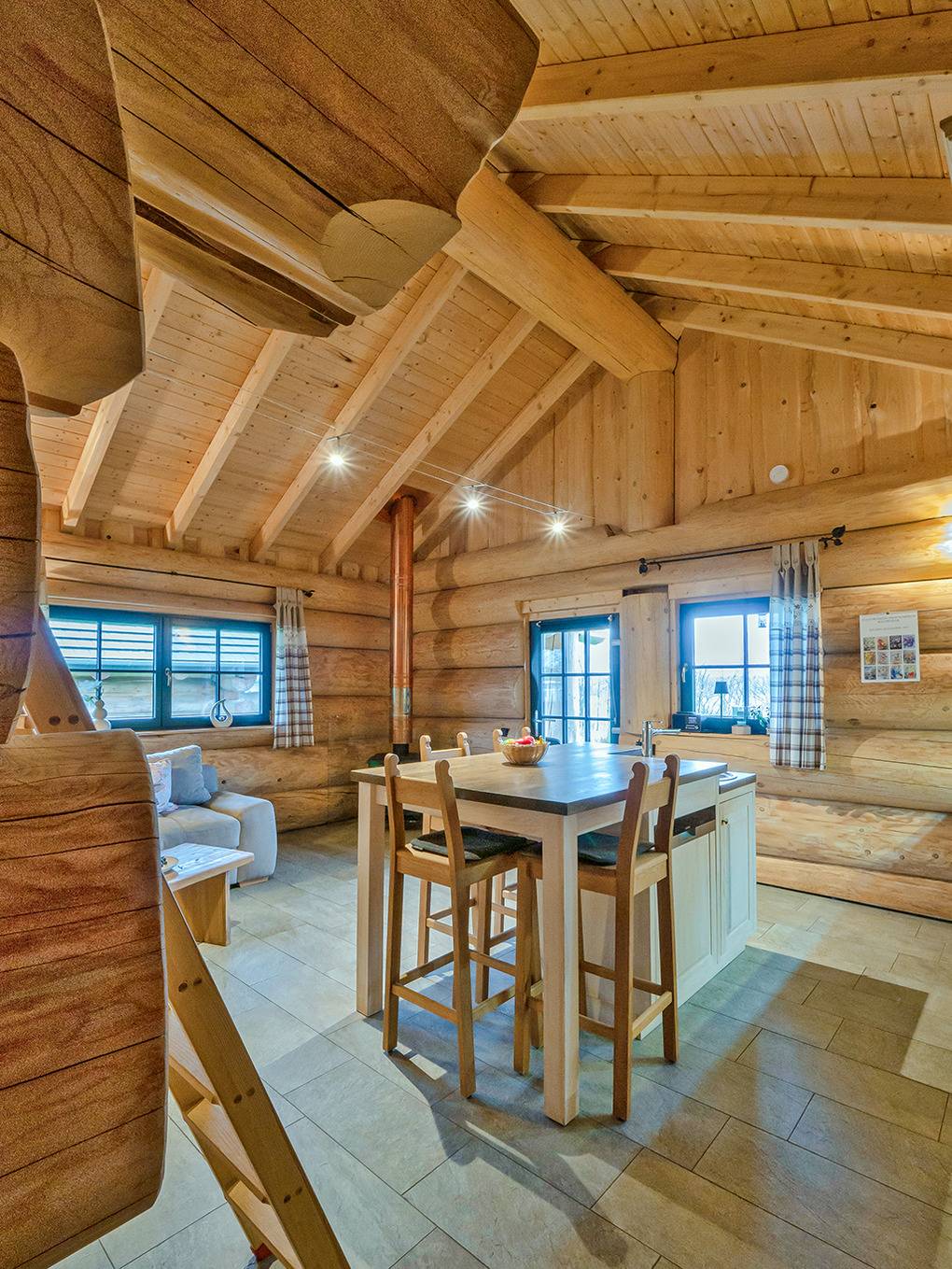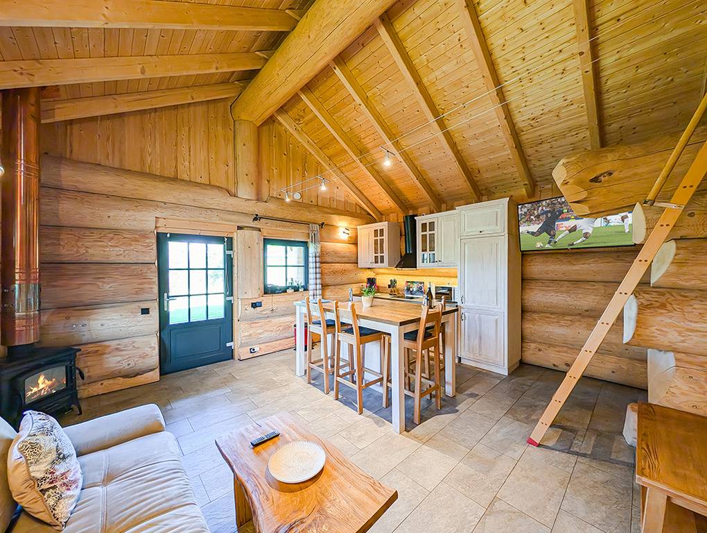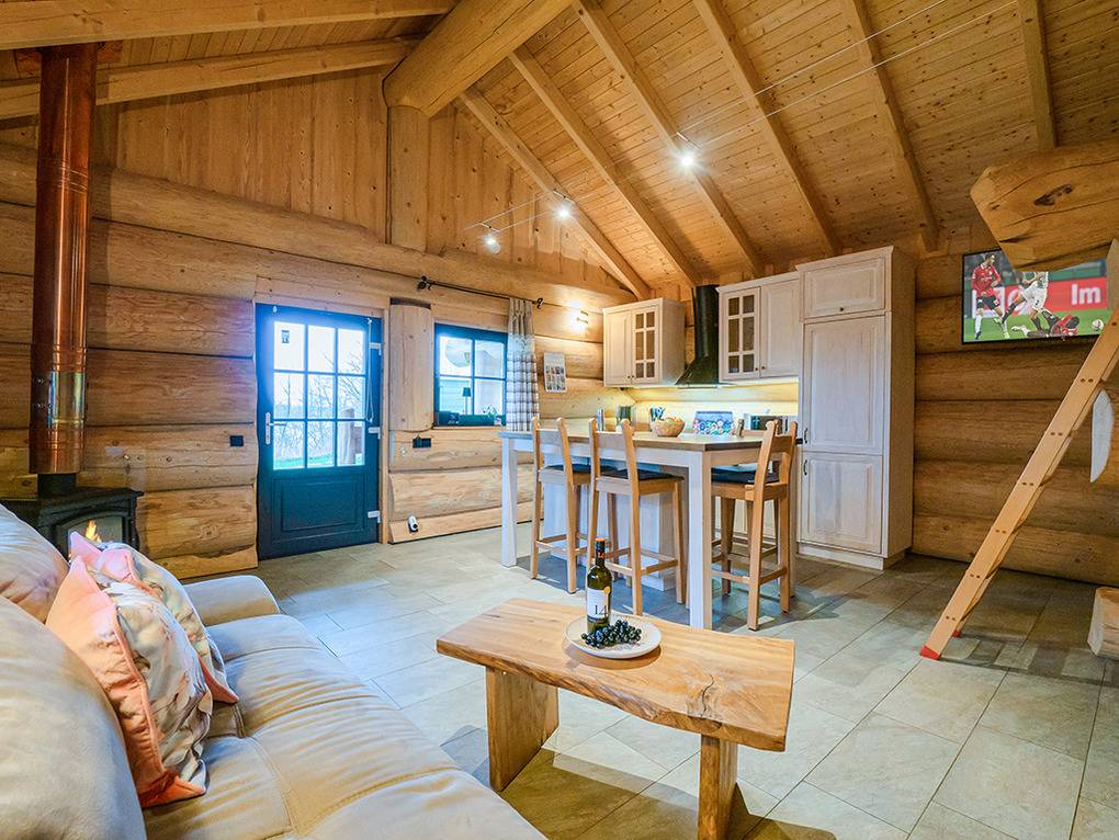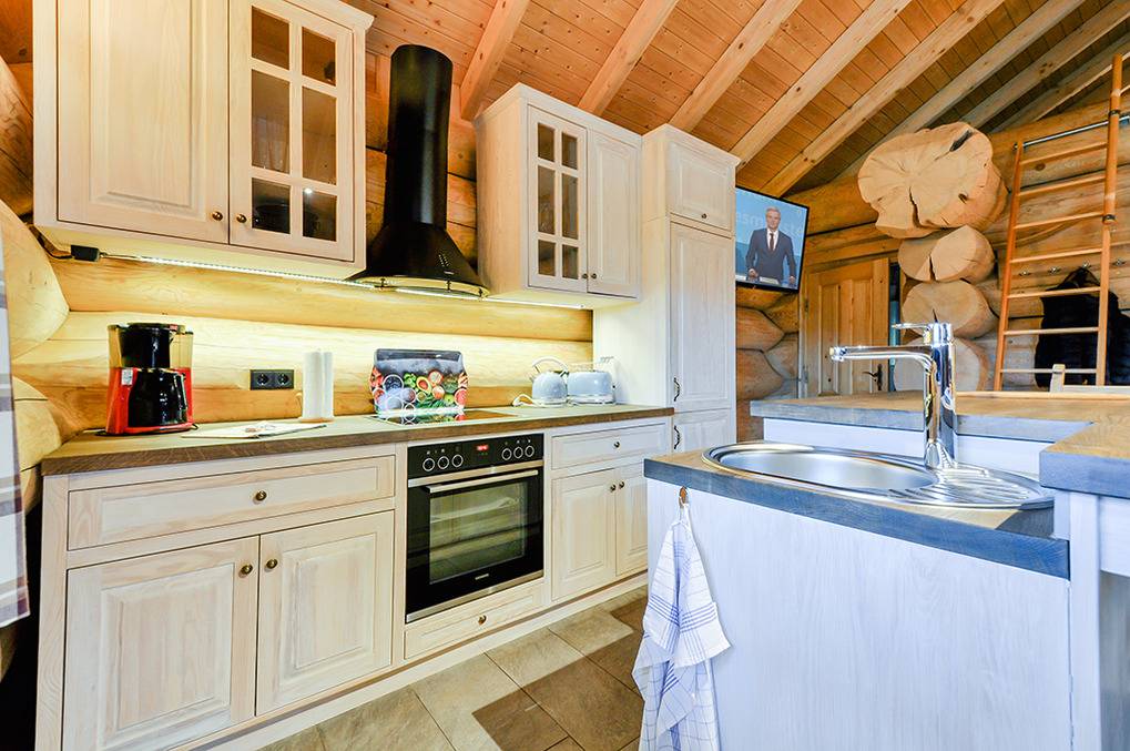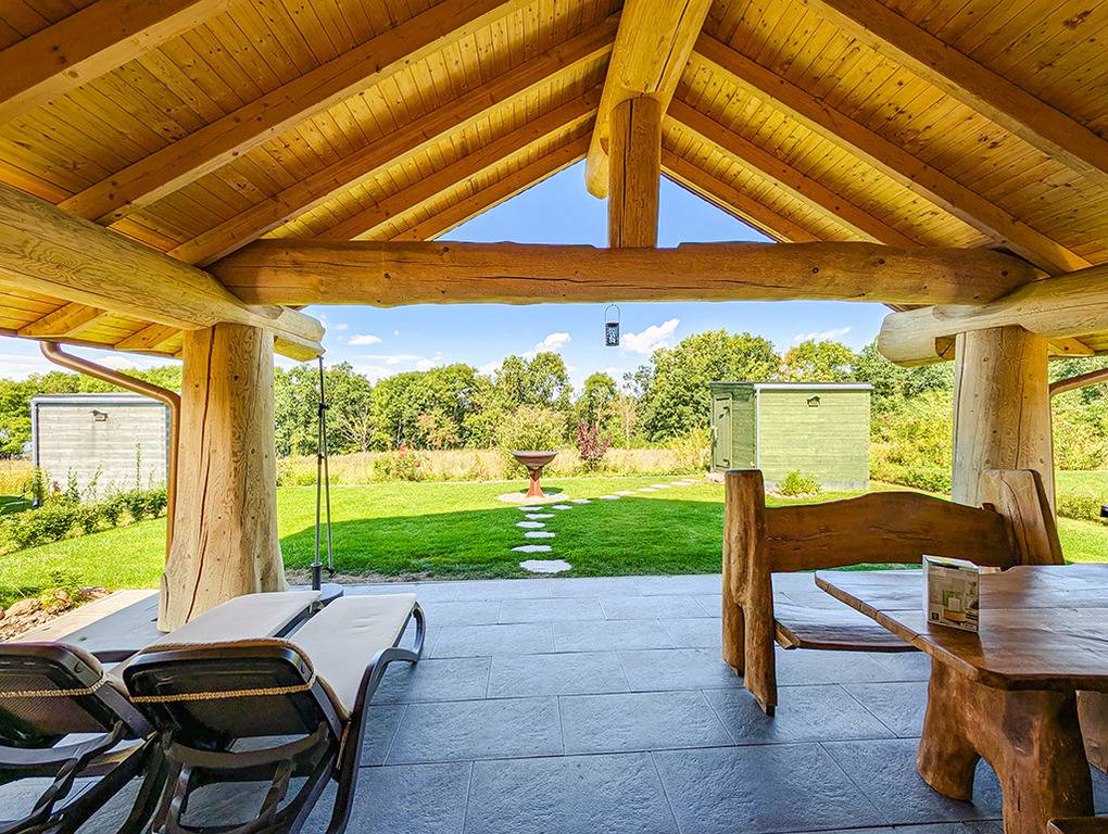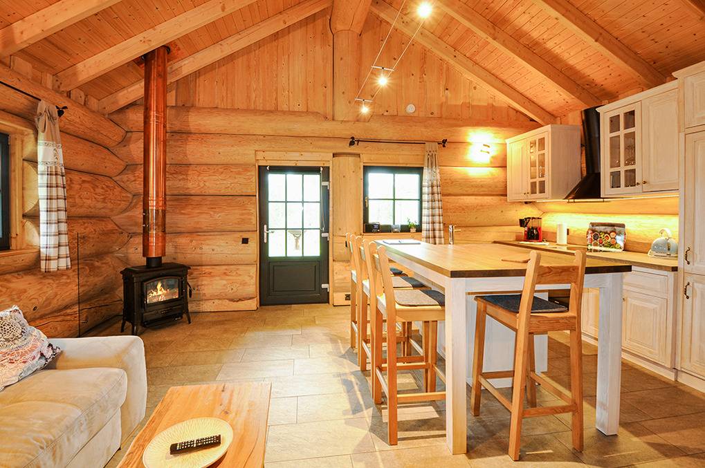 Haus: Sehr schöne Ferienhäuser mit Kaminofen und Sauna. Kleine Ferienhaussiedlung mit sieben Naturstammhäusern im kanadischen Blockhausstil. Jedes Haus mit rustikal-gemütlichem Ambiente. Geschmackvolle Einrichtung, moderne Komfortausstattung. Glasfaser-Internetzugang über W-Lan. Waschmaschine. Zentral-/Fußbodenheizung. Nichtraucherhaus. Große überdachte Terrasse mit Sitzmöbeln, Feuerschale, Cortenstahl-Grill. Garten mit Rasenfläche, Ruheliegen. Eigenes Saunahaus mit Panoramafenster. 2 Pkw-Stellplätze am Haus.
