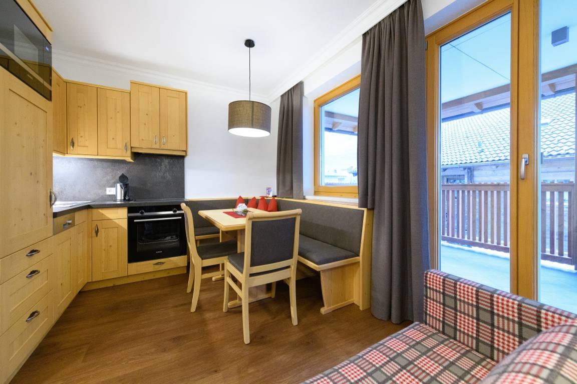 Das Appartement ist westlich ausgerichtet, hat 35 m² und bietet Platz für 2 bis 4 Personen. Die Einrichtung ist im alpinen Stil.