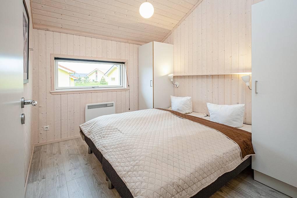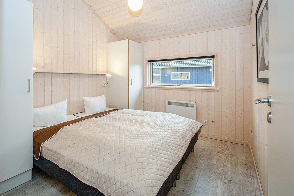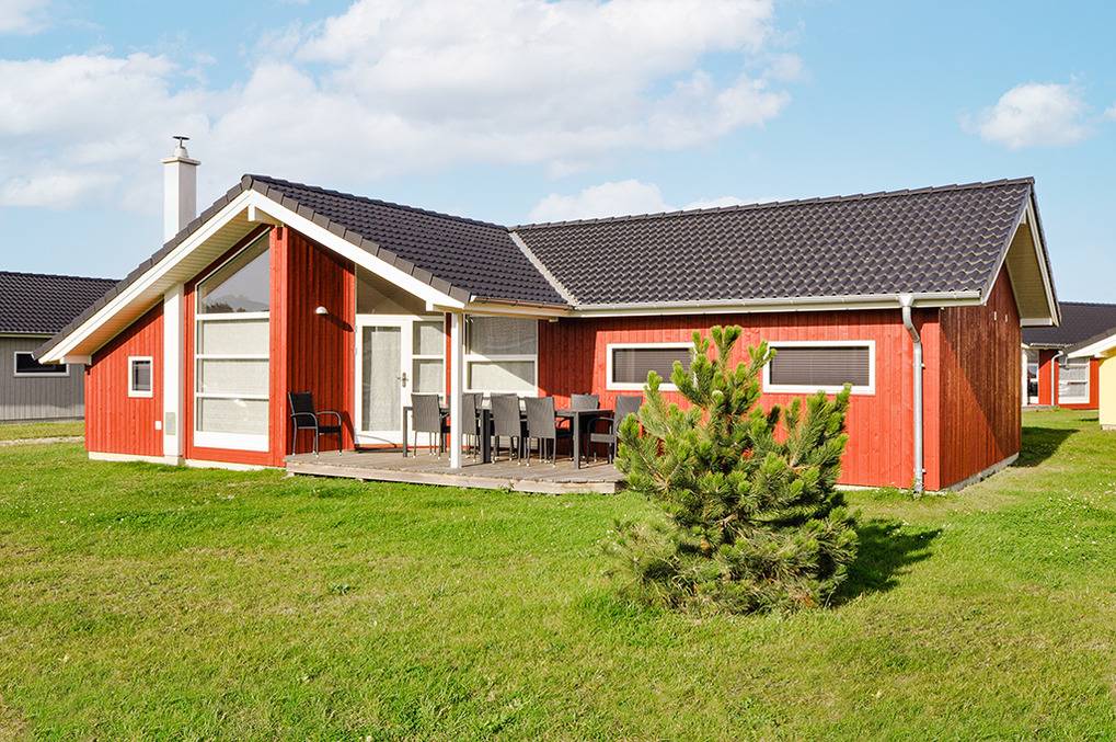 Haus: Gepflegtes Ferienresort mit farbenfrohen skandinavischen Ferienhäusern. Alle Ferienhäuser mit Sauna und Kaminofen. Helle, bis zum Dachgiebel ausgebaute Wohn-/Essbereiche mit großen Fensterfronten. Ansprechende Einrichtung, moderne Komfortausstattung. Internetzugang für bis zu 3 Geräte über W-Lan, Flachbild-Sat-TV, DVD, Radio/CD. Bäder mit Fußbodenheizung, Haarfön, Waschmaschine/Trockner, meist Whirlpool. Elektroheizung. Nichtraucherhäuser. Teilüberdachte Holzterrasse mit Sitz- und Liegemöbeln, Grill. Pkw-Stellplatz am Haus, weitere Stellplätze bei der Rezeption (je nach Verfügbarkeit).