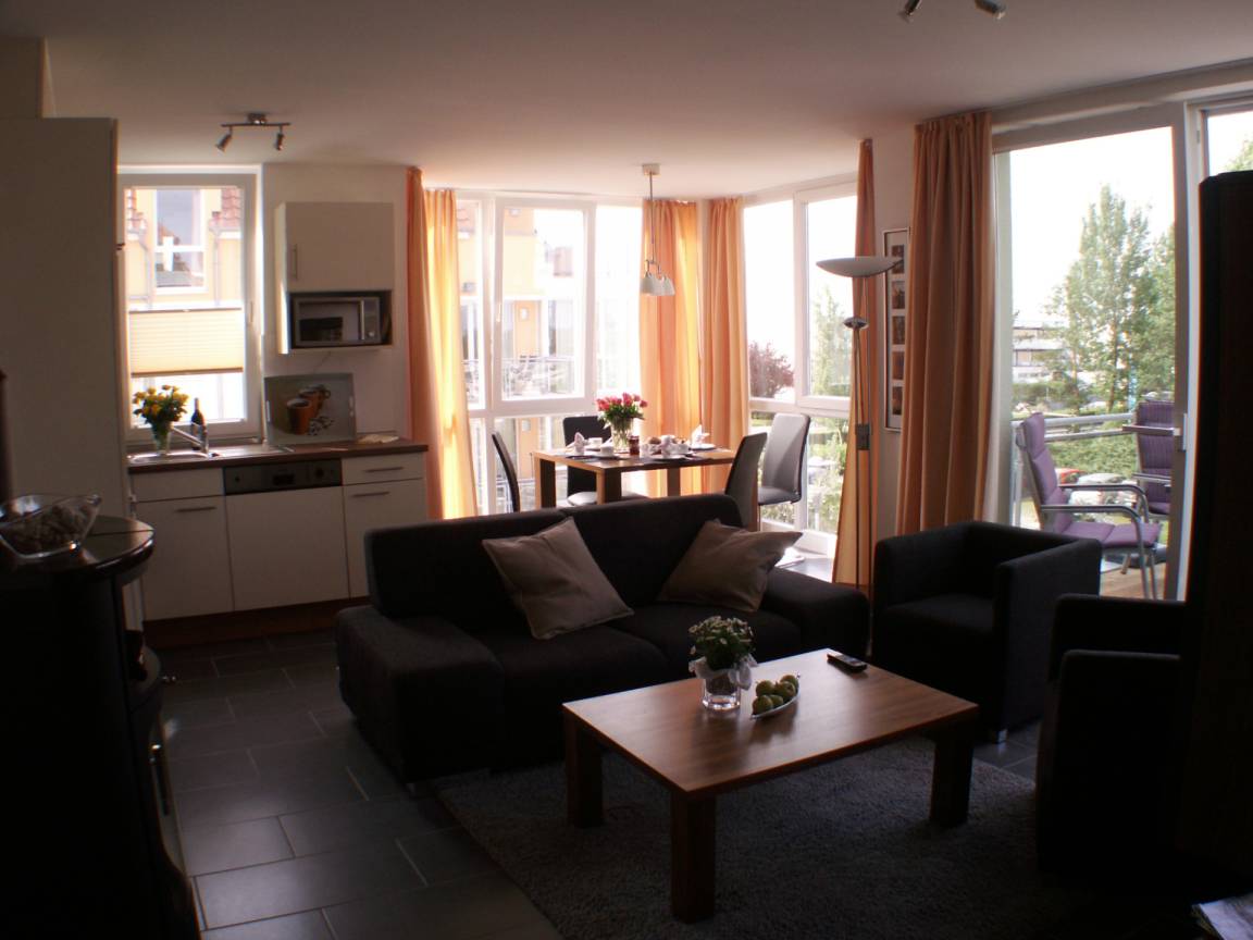 Die Einrichtung ist geschmackvoll und die Küche bietet mit Cerankochfeld, Backofen, Mikrowelle, Spülmaschine und Kühl-/Gefrierkombination viel Komfort. Die Wohnung befindet sich im 2. Obergeschoss und ist bequem mit einem Fahrstuhl zu erreichen. Auf dem Balkon können Sie ab mittags bis zum Abend die Sonne genießen, Meeresrauschen und Blick bis zur Ostsee inklusive. DVD- und CD-Player, eine Spielesammlung, Föhn und Wecker sind in der Wohnung vorhanden.
