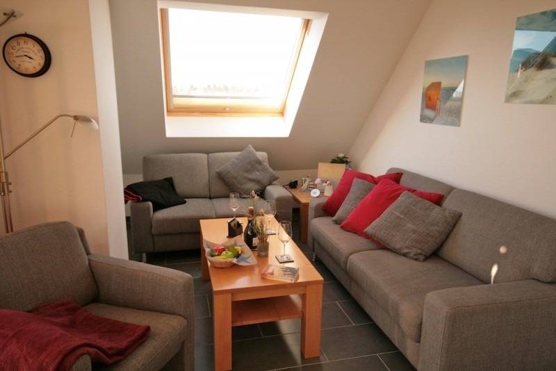 'Möwennest 14'. Erleben Sie erholsame Ferientage in unserer großen modernen Penthousewohnung mit jeglichem Komfort und wundervollem Meerblick.