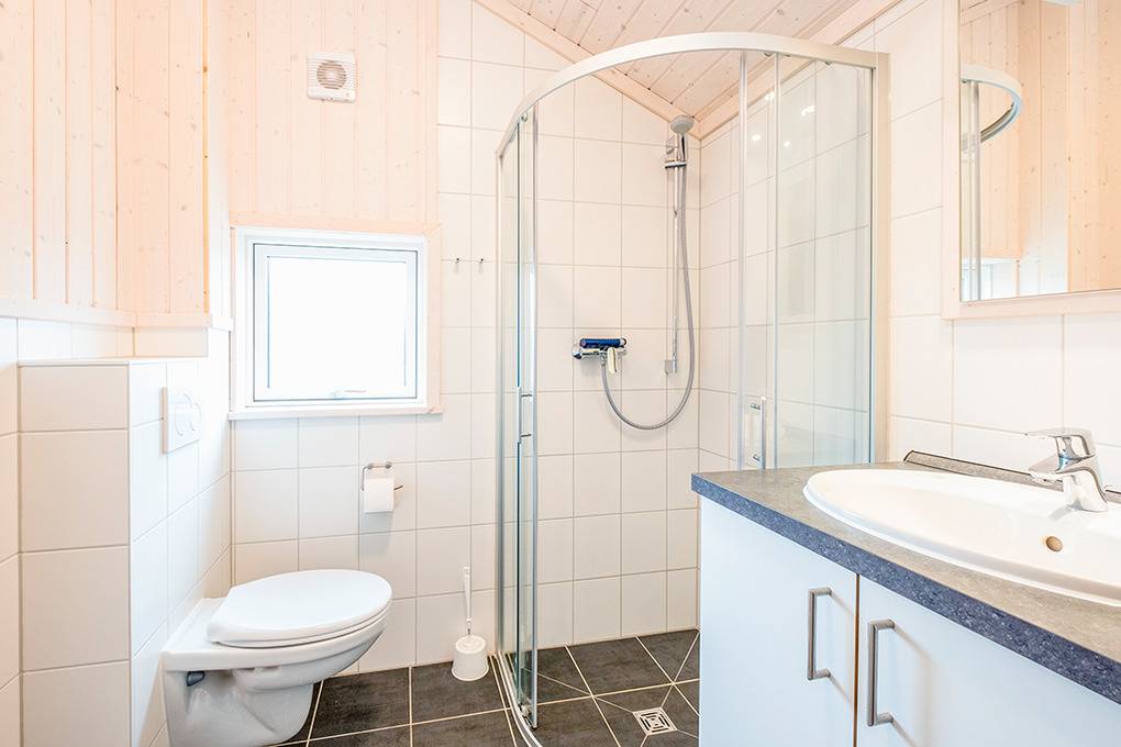 Haus: Gepflegtes Ferienresort mit farbenfrohen skandinavischen Ferienhäusern. Alle Ferienhäuser mit Sauna und Kaminofen. Helle, bis zum Dachgiebel ausgebaute Wohn-/Essbereiche mit großen Fensterfronten. Ansprechende Einrichtung, moderne Komfortausstattung. Internetzugang für bis zu 3 Geräte über W-Lan, Flachbild-Sat-TV, DVD, Radio/CD. Bäder mit Fußbodenheizung, Haarfön, Waschmaschine/Trockner, meist Whirlpool. Elektroheizung. Nichtraucherhäuser. Teilüberdachte Holzterrasse mit Sitz- und Liegemöbeln, Grill. Pkw-Stellplatz am Haus, weitere Stellplätze bei der Rezeption (je nach Verfügbarkeit).