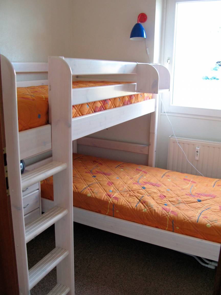 Die Räumlichkeiten der Wohnung sind über einen Flur inkl. Küchenzeile (4-Plattenherd/Backofen, Dunstabzugshaube und Kühlschrank mit Gefrierfach) miteinander verbunden. Es gibt ein modernes Bad mit Duschkabine, ein Kinderzimmer mit Doppelbett, ein Schlafzimmer und ein geräumiges Wohnzimmer mit separatem Essbereich und gemütlicher Sofaecke. Hier finden Sie einen LCD-Fernseher mit DVD-Player sowie einen CD-Player.