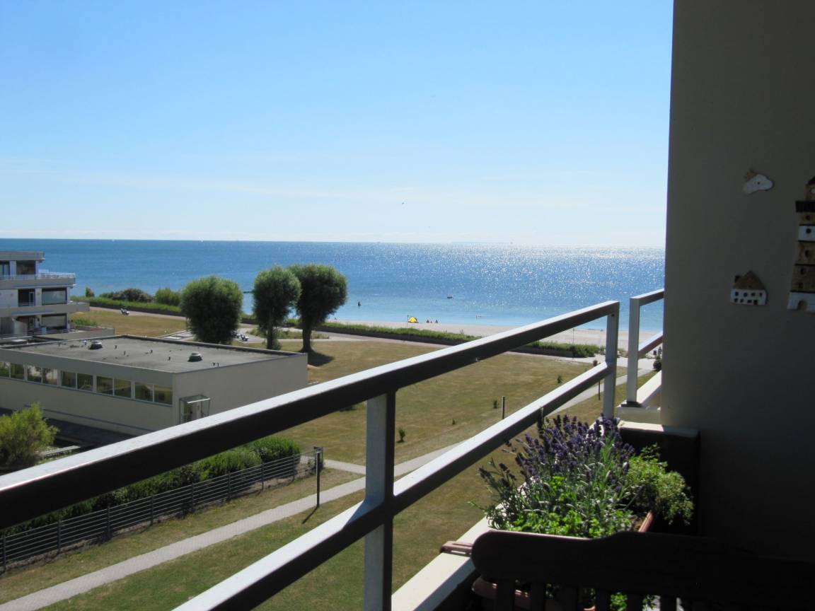 Ein geräumiger Balkon lädt bei Morgensonne zum Frühstücken ein. Von dort hat man eine schöne Sicht auf die Lübecker Bucht und den nahe gelegenen Strand sowie zur Fehmarn-Sundbrücke und den Kurpark in Richtung Grossenbrode.