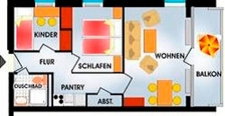 46 m² Ferienwohnung ∙ 2 Schlafzimmer ∙ 2 Gäste
