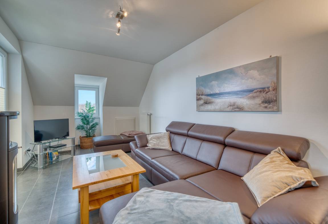 Liebevoll gestaltete Penthouse-Ferienwohnung im 3. Obergeschoss im Haus Möwennest im Strandpark Großenbrode mit 97 m² Wohnfläche für bis zu 5 Personen (max. 4 Erwachsene). Der Ostseesandstrand ist nur etwa 150 m entfernt. Die Wohnung verfügt über zwei Dachterrassen in Süd-West-Lage, am Horizont ist sogar die Ostsee zu erkennen.