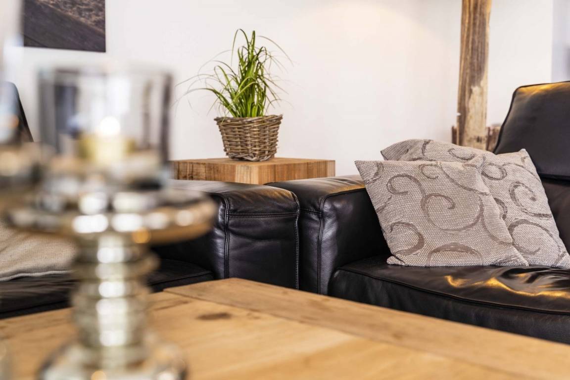 Im komfortablen Wohnzimmer können Sie sich auf einem bequemen Ledersofa vor einem knisternden Kaminfeuer ausruhen.