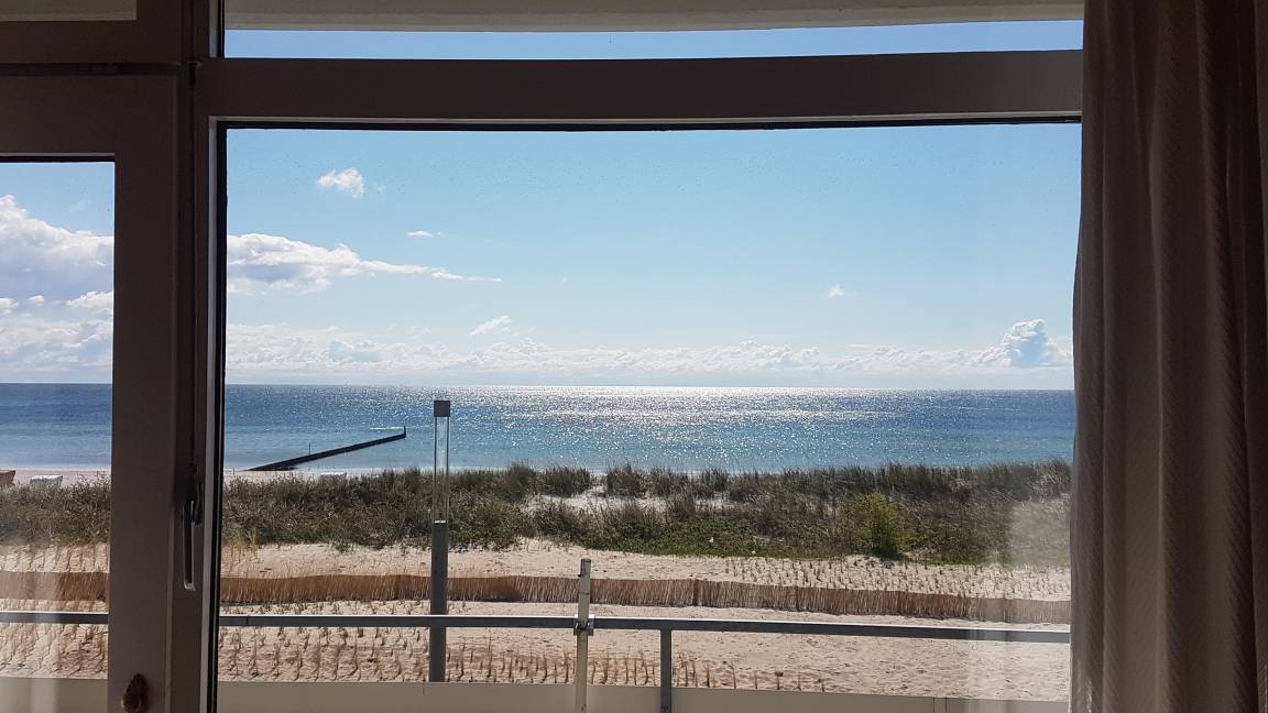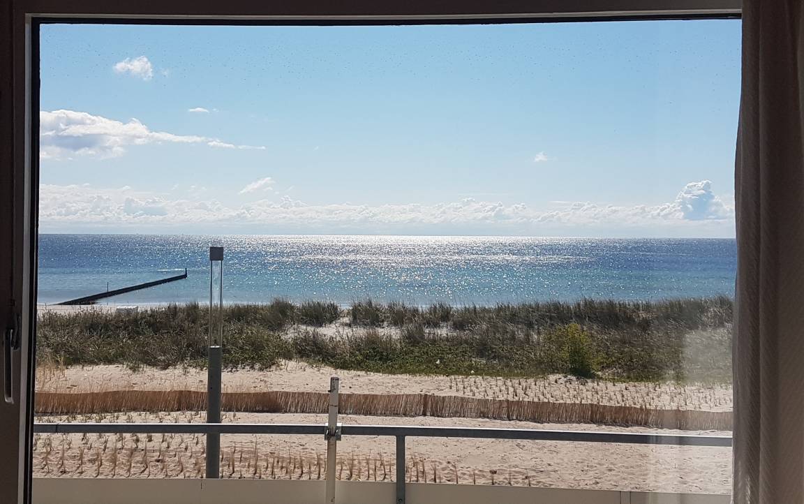 Sie wohnen in einer komplett eingerichteten Ferienwohnung mit Südlage und herrlichem Meerblick aus dem ersten Stock einer zweistöckigen Anlage direkt am feinsandigen Südstrand von Großenbrode.
