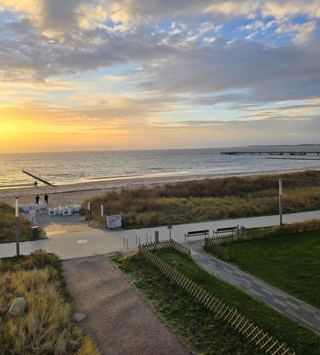 Das exklusive Apartment befindet sich in südwestlicher Lage im zweiten Obergeschoss der Apartmentanlage Meerblickvilla. Die Ostsee liegt direkt vor Ihrer Haustür - in nur 25 Metern befindet sich der feinsandige, wunderschöne Südstrand mit seiner Strandpromenade, der Seemole und der 230 Meter langen Seebrücke. Genießen Sie einen traumhaften Blick auf die Ostsee und das bunte Strandleben.