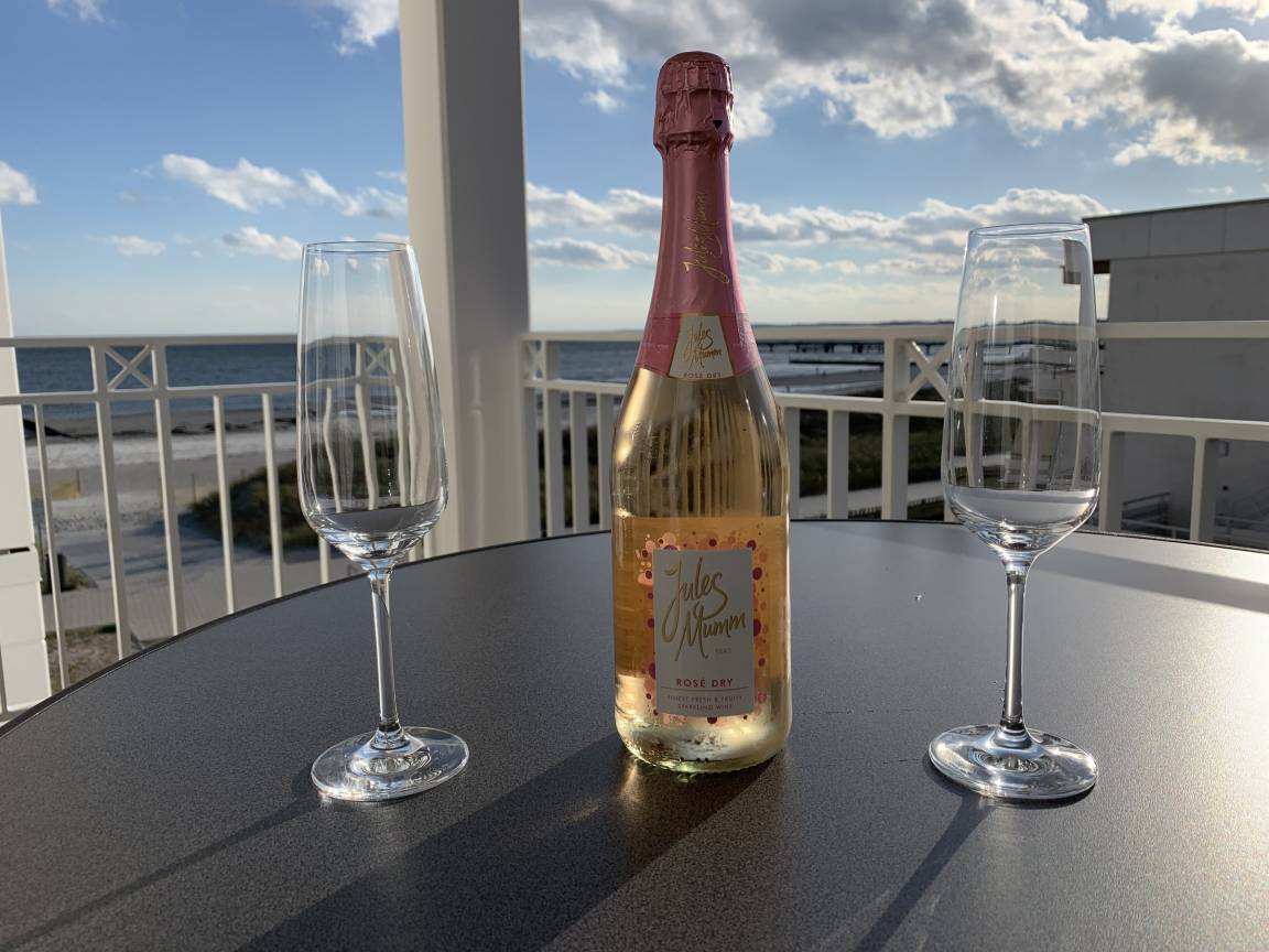 Entspannte und sonnige Stunden mit seitlichem Blick auf die Ostsee verbringen Sie auf dem überdachten und mit Gartenmöbeln ausgestatteten Balkon in Süd-West-Lage. Der Balkon ist vom Wohnbereich aus zugänglich. Ein Kinderbett kann gegen Entgelt im Wohnbereich aufgestellt werden und auf Wunsch können Sie eine Kleinkindausstattung hinzubuchen. Haustiere sind in diesem Apartment herzlich willkommen!