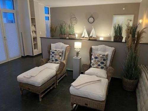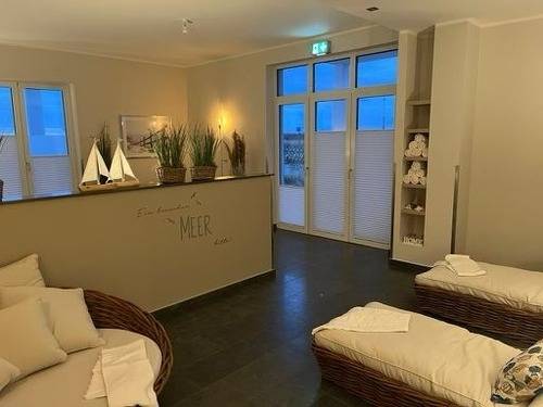Im geschmackvollen Foyer mit Rezeption heißen wir Sie herzlich willkommen und stehen Ihnen während Ihres Aufenthaltes bei Fragen gern zur Seite. Auf Wunsch nutzen Sie ganz nach Belieben, die attraktiven Annehmlichkeiten der Apartmentanlage Meerblickvilla - im Erdgeschoss befindet sich ein moderner Saunabereich mit finnischer Sauna, Biosauna und ein Ruheraum mit kleiner Terrasse.