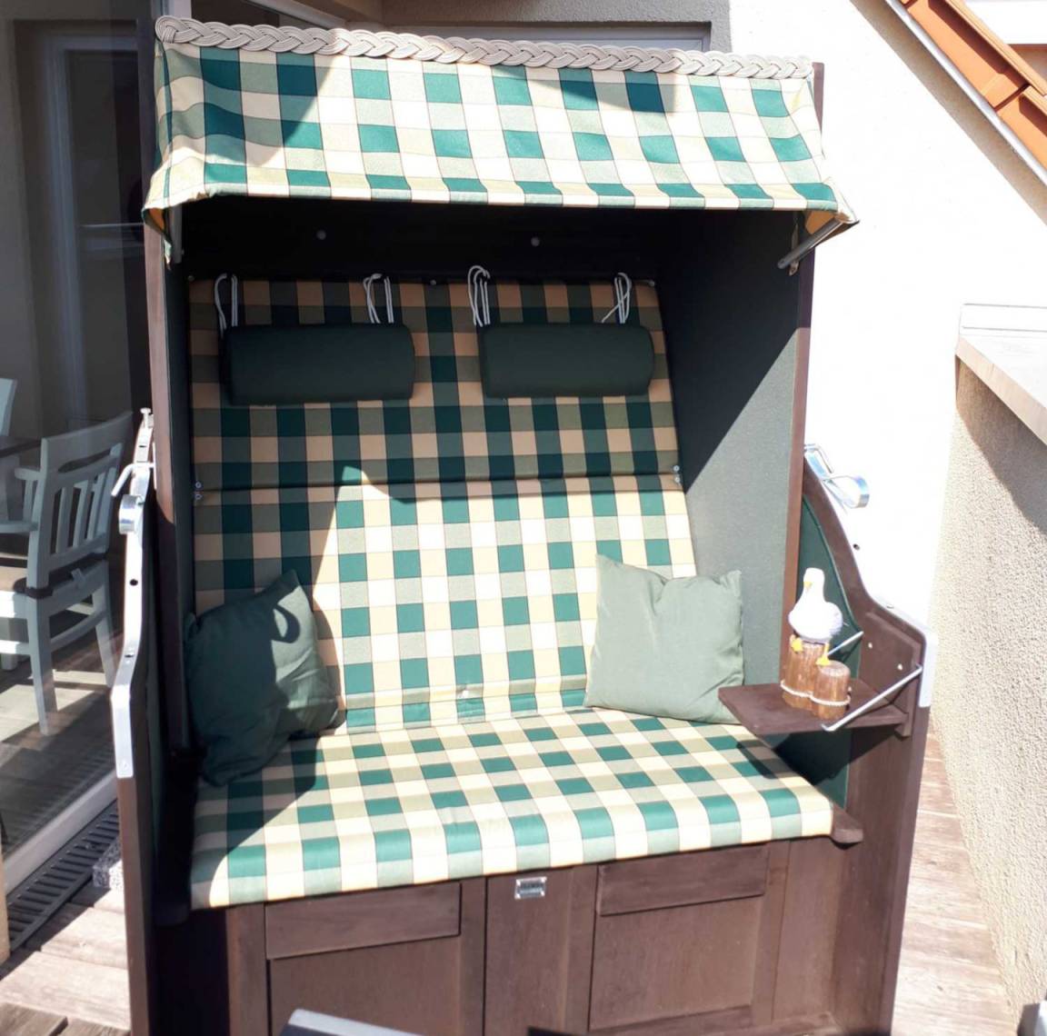 Es erwartet Sie ein 87qm großes Apartment für maximal 5 Personen mit zwei separaten Schlafzimmern in der 3. Etage und 2 Dachterrassen in Süd-West-Lage und Blick auf die Ostsee. Der feine Sandstrand ist nur wenige Gehminuten entfernt. Dort steht unseren Gästen in der Saison von Mai bis September ein Strandkorb zur kostenfreien Nutzung zur Verfügung.