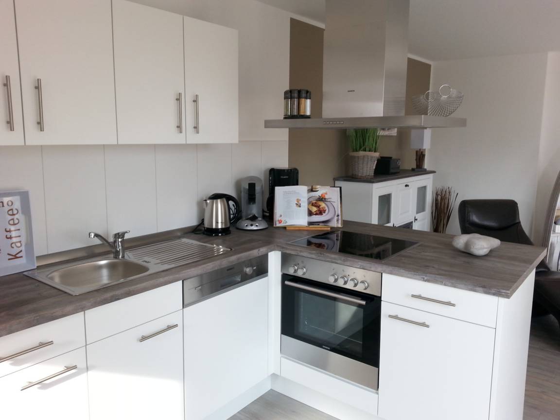 In der offenen Küche finden Sie die modernsten Geräte vor, wie einem E-Herd mit Ceranfeld, Kühlschrank mit Gefrierfach, Geschirrspüler, Mikrowelle, Kaffeemaschine, Senseo Padmaschine, Wasserkocher, Toaster, komplettes Geschirr etc. und macht eine Selbstverpflegung möglich. Der vorhandene Elektrogrill kann auf einer der beiden Dachterrassen gern genutzt werden.
