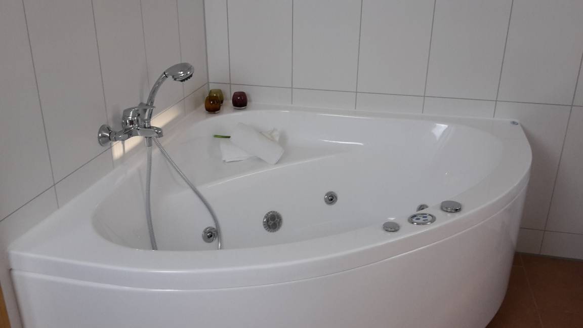 Die Krönung eines jeden Tages ist das unglaublich wohltuende Wellnessbad mit Dusche, Sauna und Whirlpool, in dem Sie bei idyllischem Kerzenschein entspannen können.