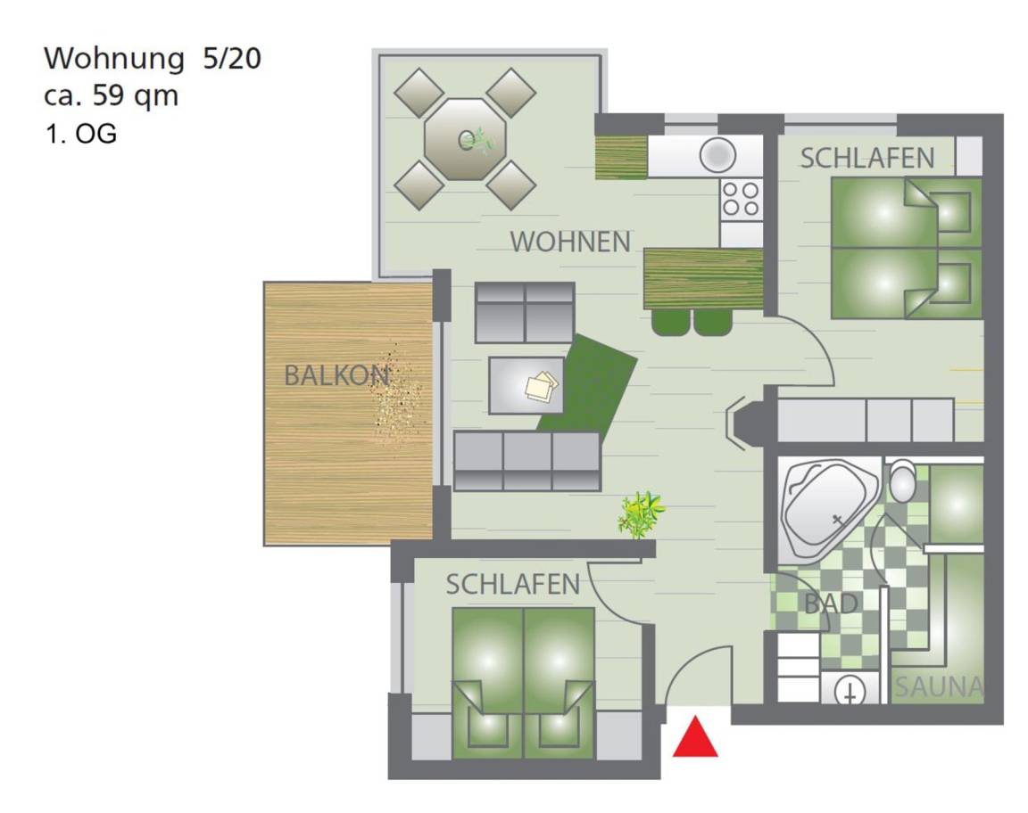 59 m² Ferienwohnung ∙ 2 Schlafzimmer ∙ 4 Gäste