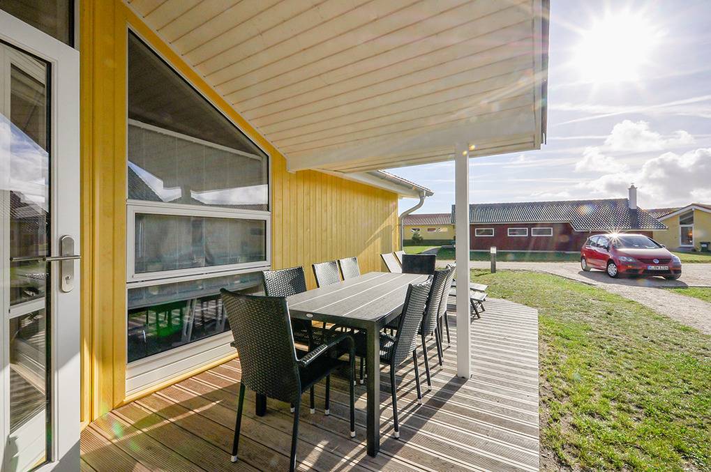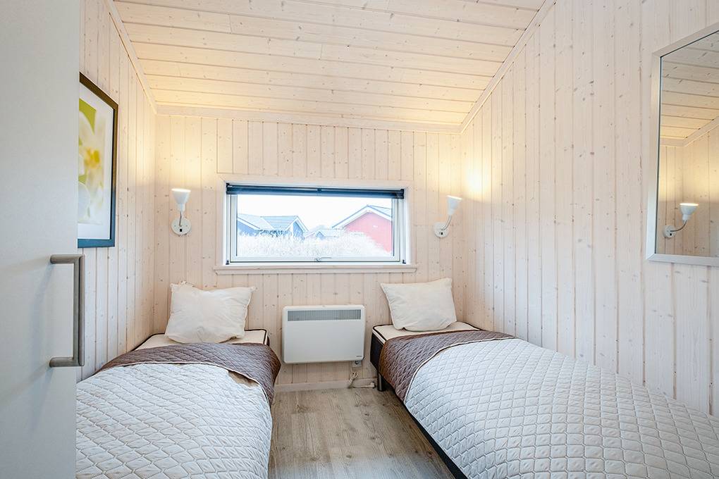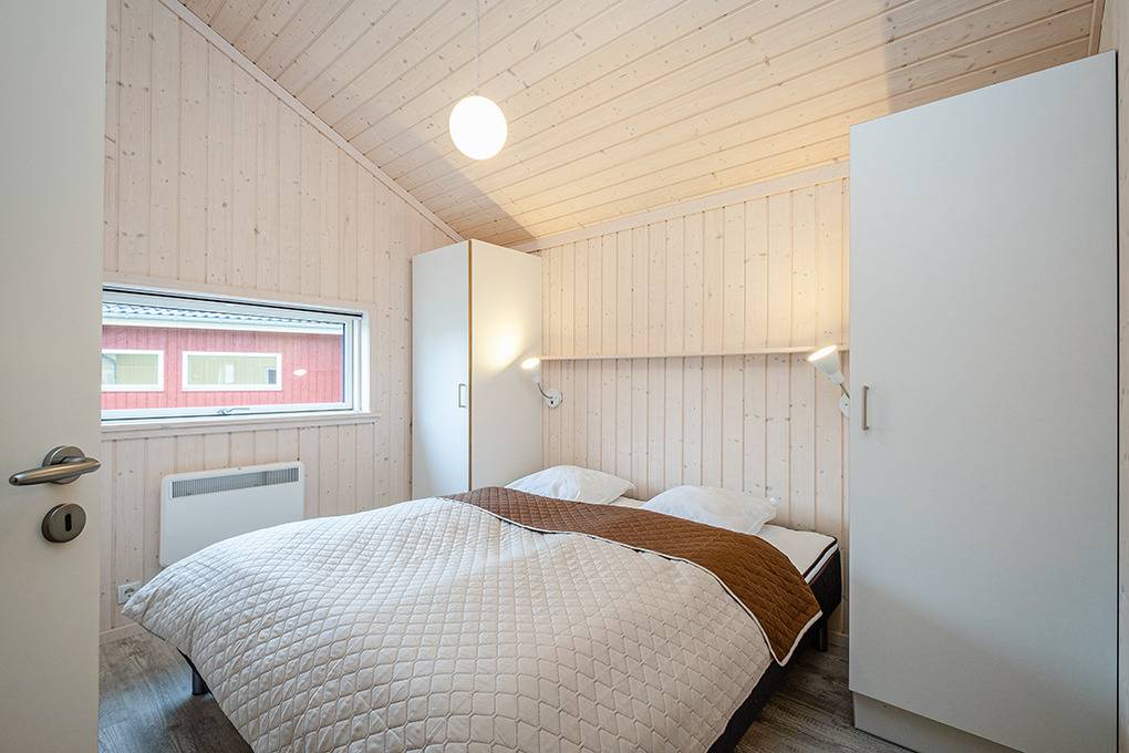 Haus: Gepflegtes Ferienresort mit farbenfrohen skandinavischen Ferienhäusern. Alle Ferienhäuser mit Sauna und Kaminofen. Helle, bis zum Dachgiebel ausgebaute Wohn-/Essbereiche mit großen Fensterfronten. Ansprechende Einrichtung, moderne Komfortausstattung. Internetzugang für bis zu 3 Geräte über W-Lan, Flachbild-Sat-TV, DVD, Radio/CD. Bäder mit Fußbodenheizung, Haarfön, Waschmaschine/Trockner, meist Whirlpool. Elektroheizung. Nichtraucherhäuser. Teilüberdachte Holzterrasse mit Sitz- und Liegemöbeln, Grill. Pkw-Stellplatz am Haus, weitere Stellplätze bei der Rezeption (je nach Verfügbarkeit).