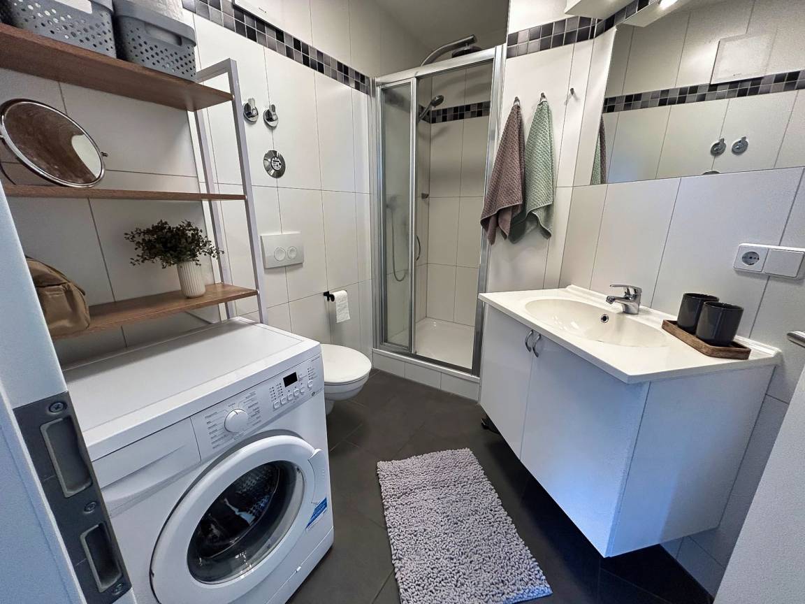 Das Badezimmer ist mit einer Wellnessdusche und einer Waschmaschine ausgestattet!