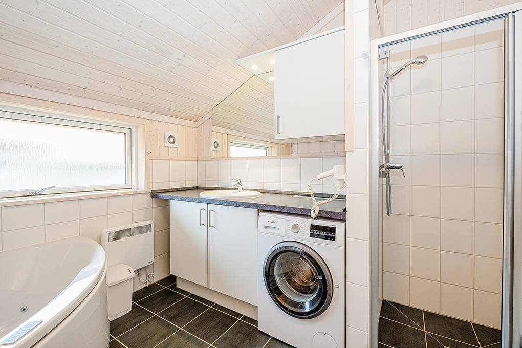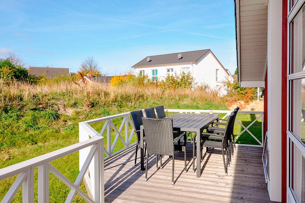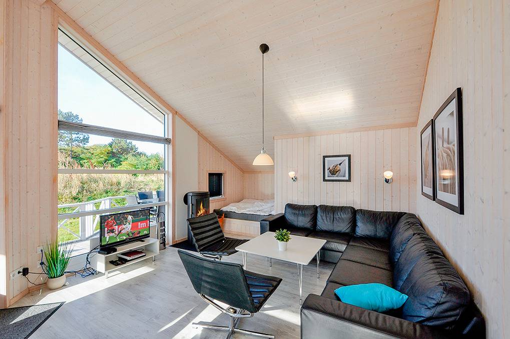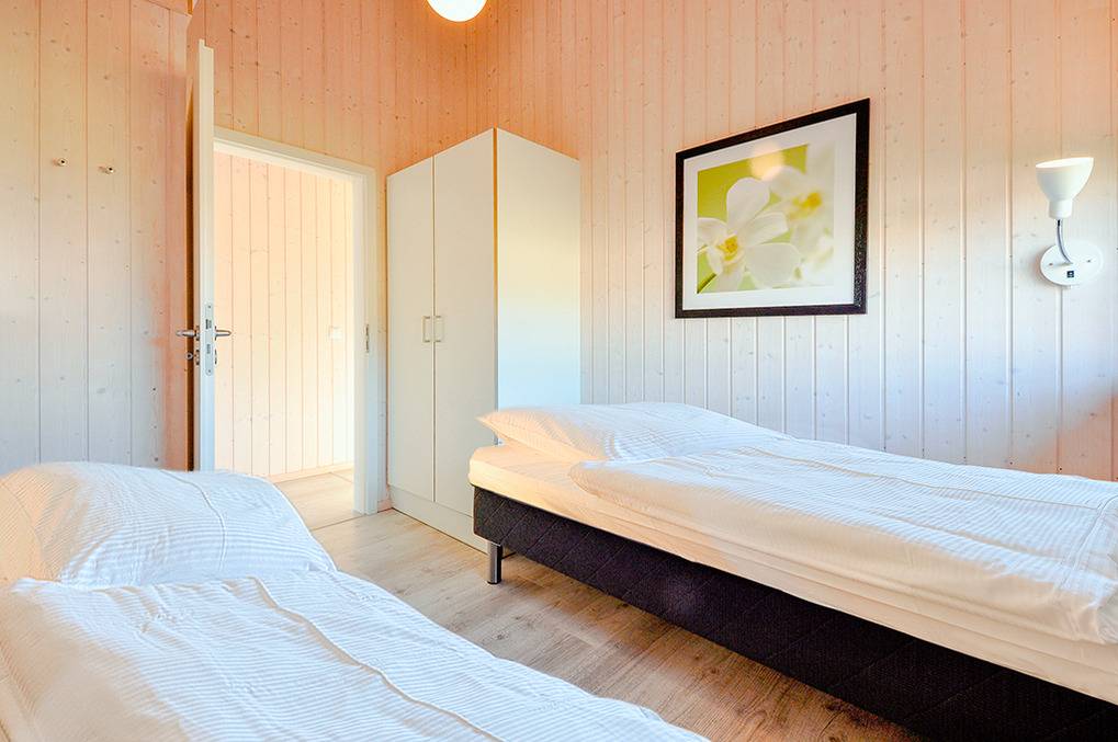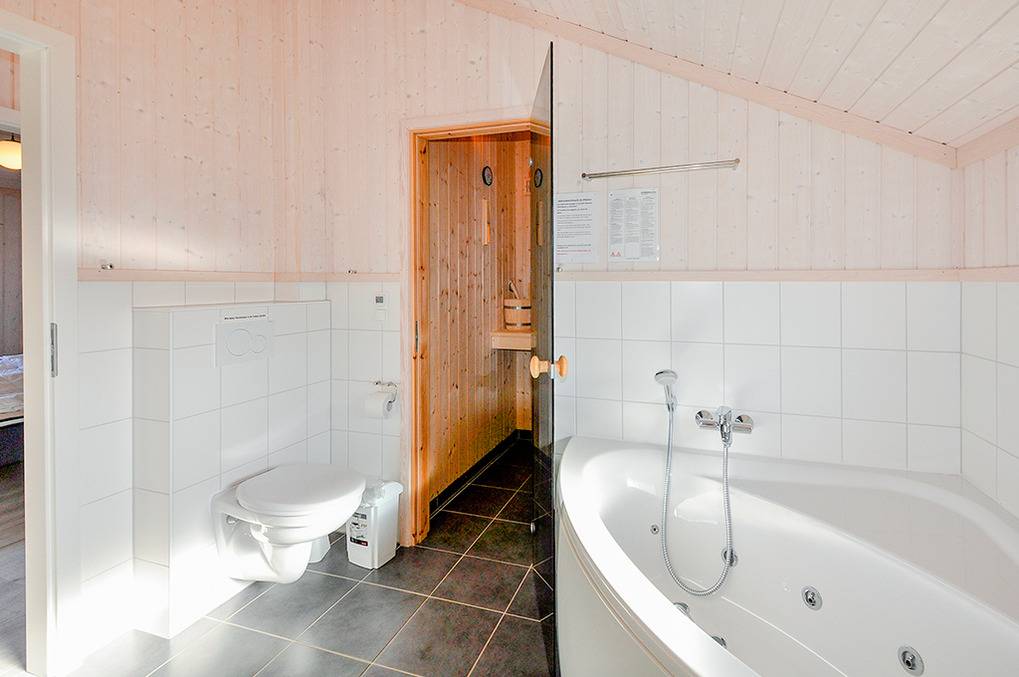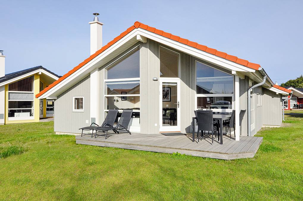 Haus: Gepflegtes Ferienresort mit farbenfrohen skandinavischen Ferienhäusern. Alle Ferienhäuser mit Sauna und Kaminofen. Helle, bis zum Dachgiebel ausgebaute Wohn-/Essbereiche mit großen Fensterfronten. Ansprechende Einrichtung, moderne Komfortausstattung. Internetzugang für bis zu 3 Geräte über W-Lan, Flachbild-Sat-TV, DVD, Radio/CD. Bäder mit Fußbodenheizung, Haarfön, Waschmaschine/Trockner, meist Whirlpool. Elektroheizung. Nichtraucherhäuser. Teilüberdachte Holzterrasse mit Sitz- und Liegemöbeln, Grill. Pkw-Stellplatz am Haus, weitere Stellplätze bei der Rezeption (je nach Verfügbarkeit).