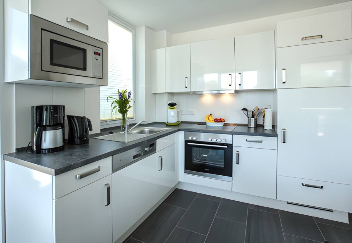 In der gut ausgestatteten Küche finden Sie alles, was ein Hobbykoch benötigt. Neben einer Filtermaschine steht zusätzlich eine Kaffeepadmaschine zur Verfügung.