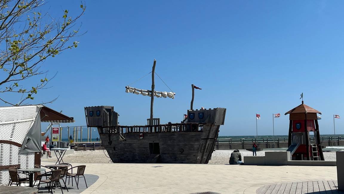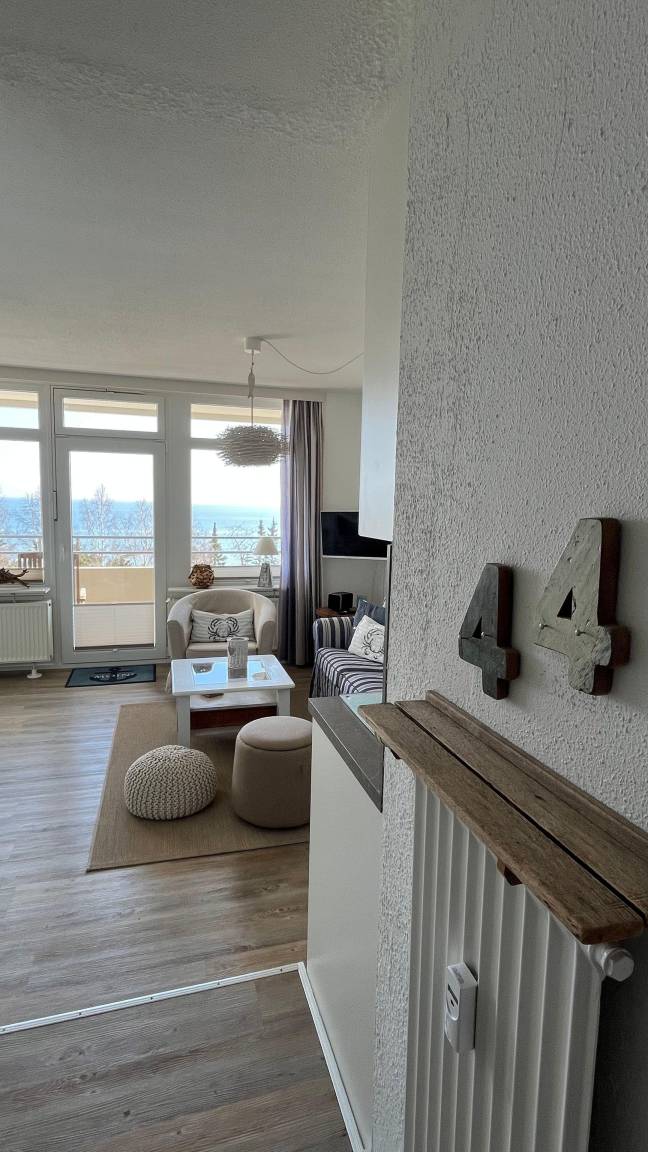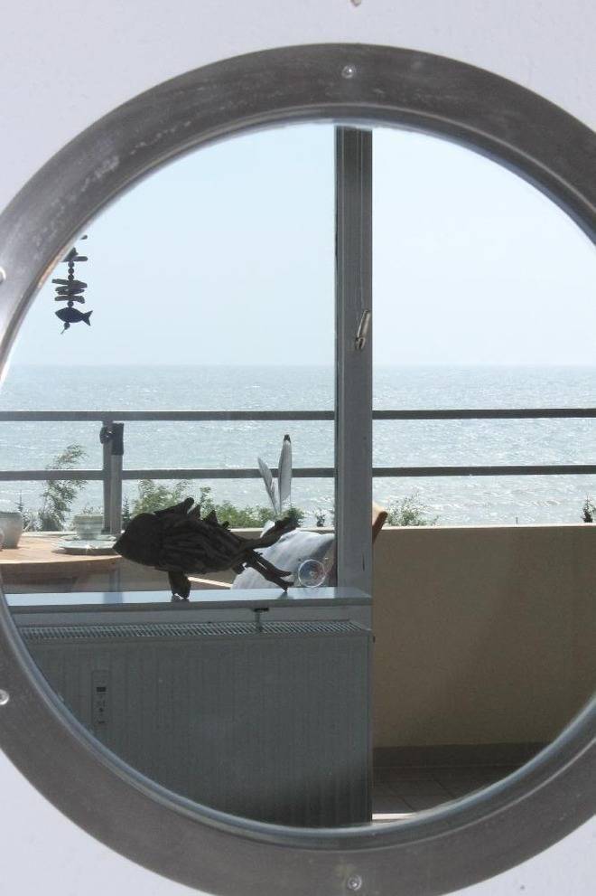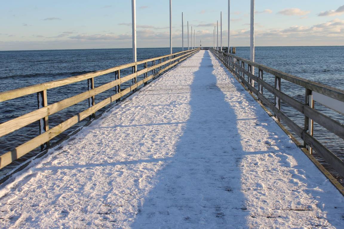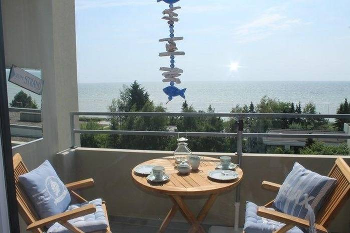 Großer Südbalkon mit grandiosem Meerblick bis zum Horizont. Auf der rechten Seite bis zur Seebrücke/Hafen. Die Sonne scheint bis zum Nachmittag auf den Balkon.