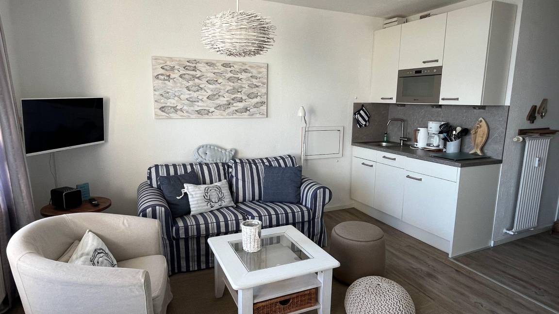 Helle 2-Zimmer-Ferienwohnung für bis zu 3 Personen direkt am Südstrand im Objekt Vier Jahreszeiten.