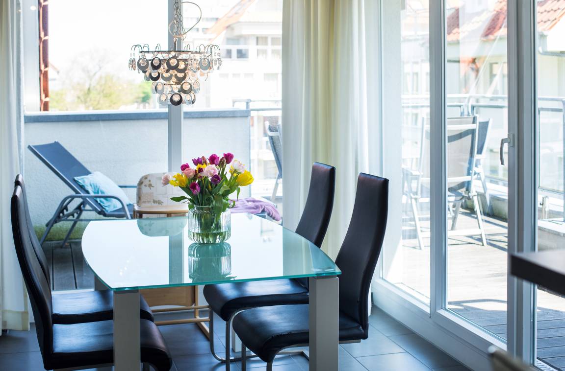 Diese Wohnung ist das perfekte Urlaubsdomizil! Die Einrichtung ist modern (LCD-TV-40-Zoll,DVD-5.1.Heimkinoanlage) und für 4 Personen ausgelegt. Auf der angrenzenden großen Dachterrasse (17,5 qm) laden Sonnenstühle,eine gemütliche Sonnenliege und bei Bedarf ein großer Sonnenschirm zum Verweilen und Sonnenbaden ein.