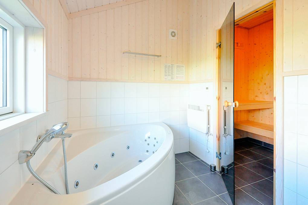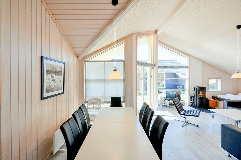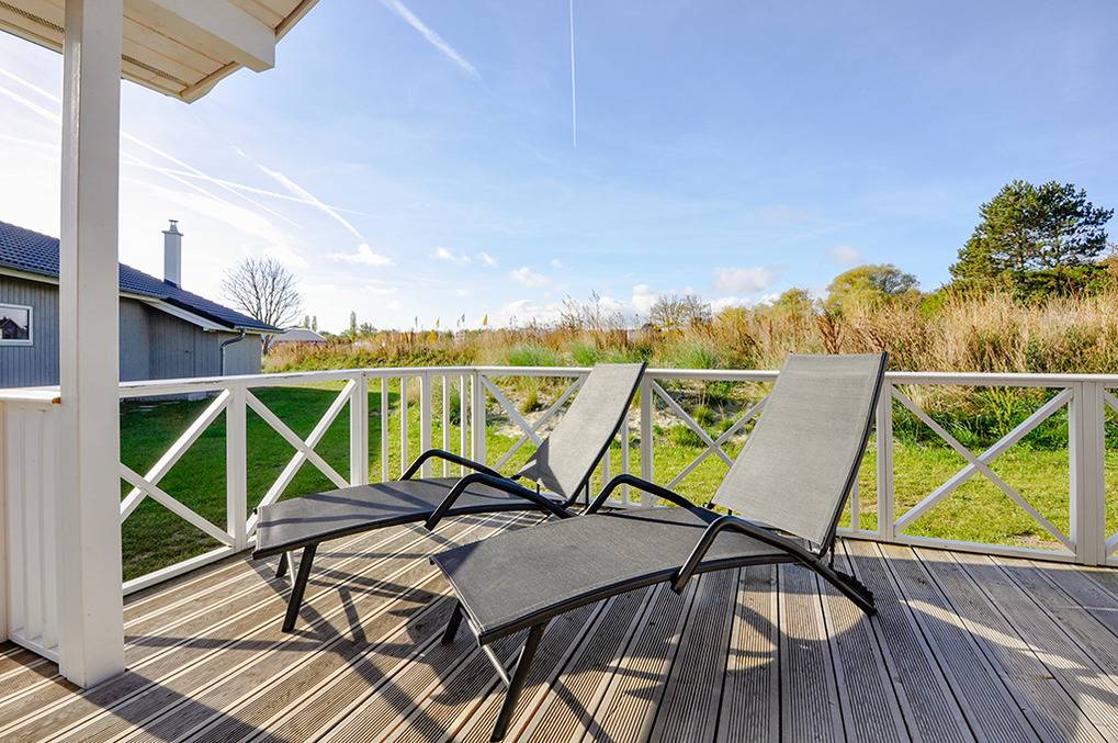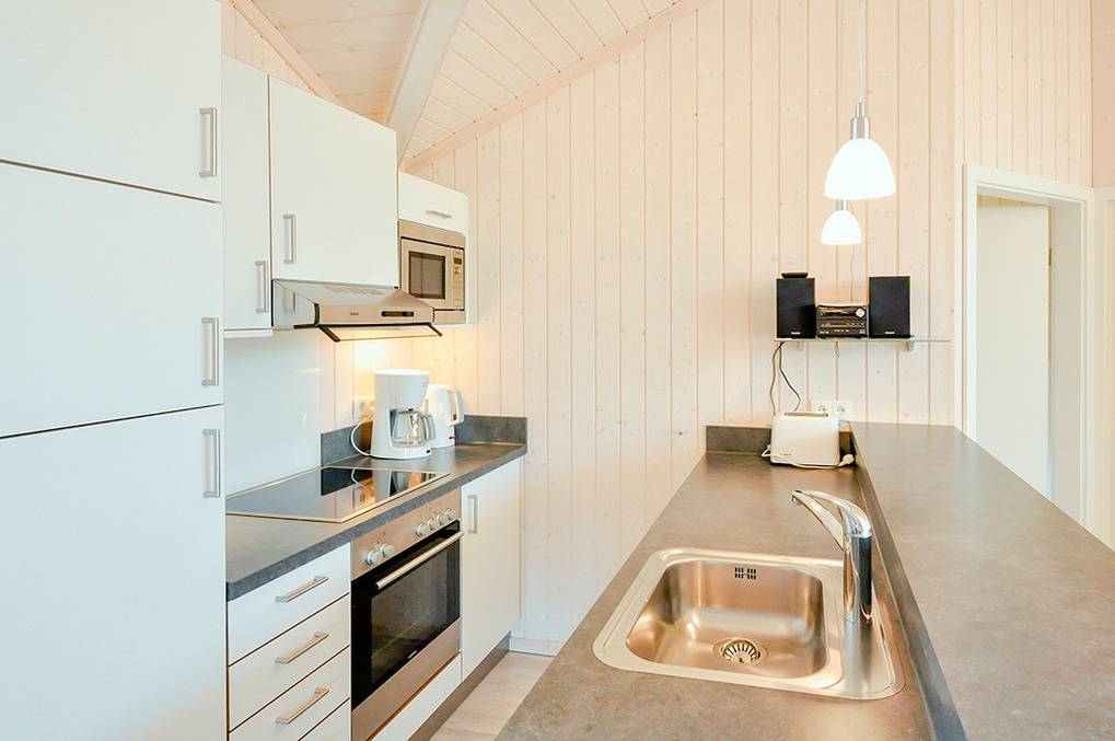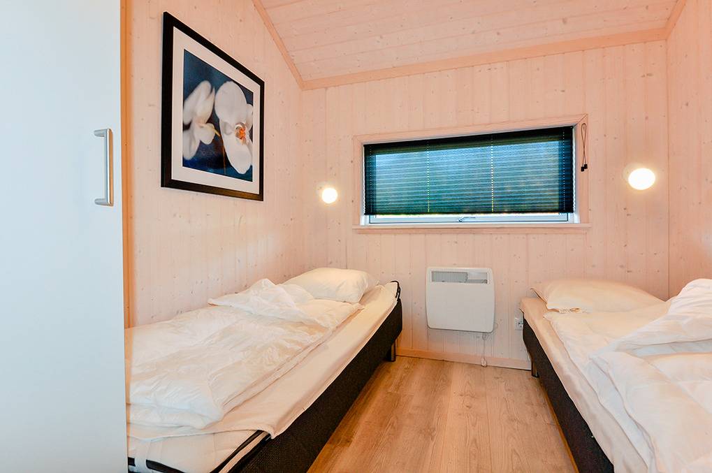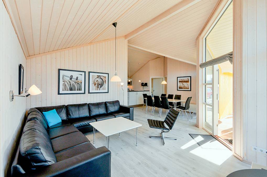 Haus: Gepflegtes Ferienresort mit farbenfrohen skandinavischen Ferienhäusern. Alle Ferienhäuser mit Sauna und Kaminofen. Helle, bis zum Dachgiebel ausgebaute Wohn-/Essbereiche mit großen Fensterfronten. Ansprechende Einrichtung, moderne Komfortausstattung. Internetzugang für bis zu 3 Geräte über W-Lan, Flachbild-Sat-TV, DVD, Radio/CD. Bäder mit Fußbodenheizung, Haarfön, Waschmaschine/Trockner, meist Whirlpool. Elektroheizung. Nichtraucherhäuser. Teilüberdachte Holzterrasse mit Sitz- und Liegemöbeln, Grill. Pkw-Stellplatz am Haus, weitere Stellplätze bei der Rezeption (je nach Verfügbarkeit).