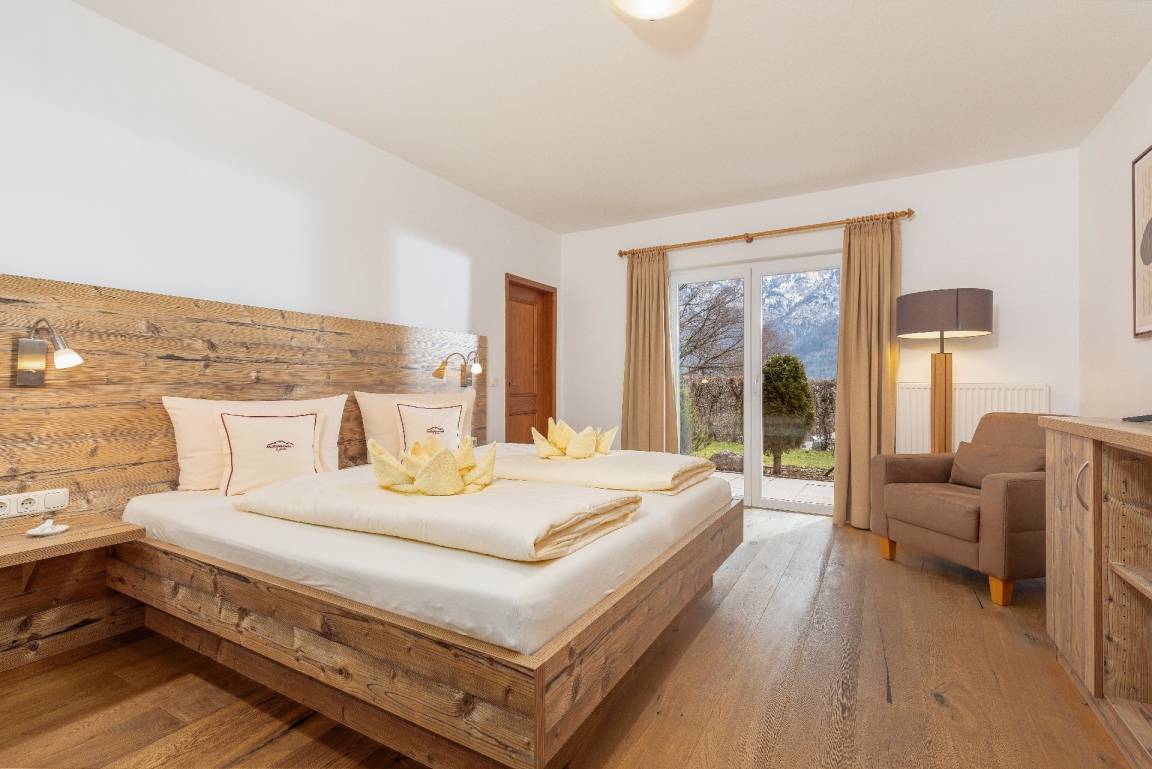 - Schlafzimmer 28 qm mit Doppelbett mit Flachbild-TV, Natur-Eichenboden,
