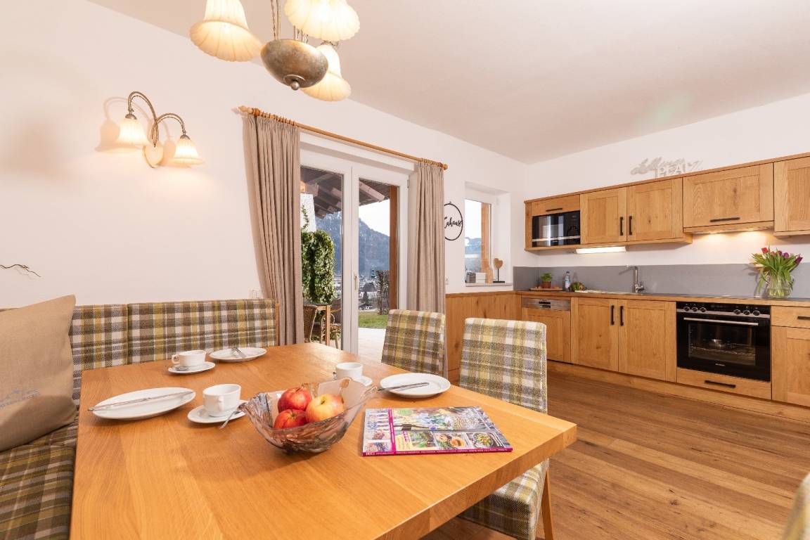 - Küche 26qm mit direktem Zugang zur Terrasse, gemütlicher Essecke, Küchenzeile mit Backofen, Mikrowelle, Ceran-Kochfeld und