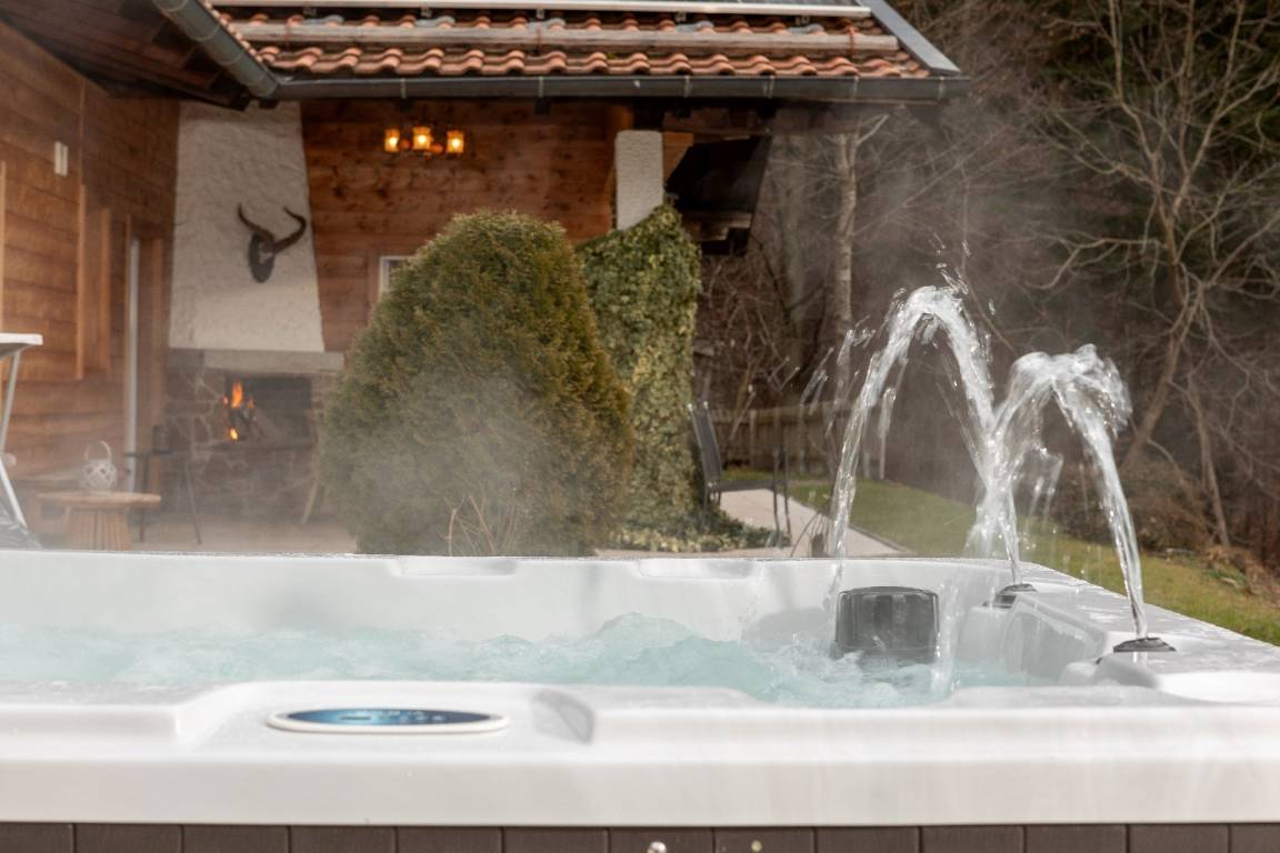 - Ganzjährig nutzbarer und beheizter Außenwhirlpool mit Blick auf die Berge